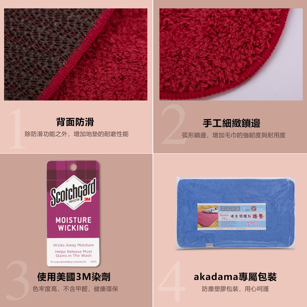 akadama 3M腳踏墊地墊 長方形/愛心形防滑門墊 吸水地毯 超吸水柔軟 開纖紗 台灣製造