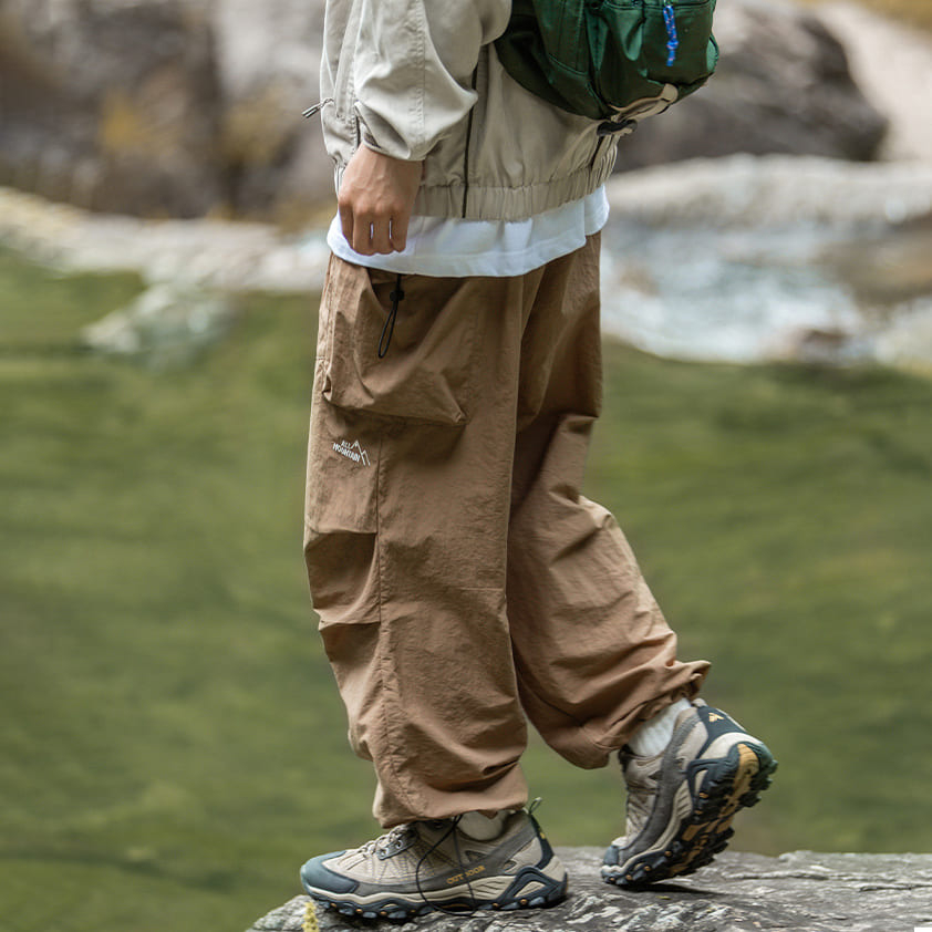 【快速出貨】工作褲 工裝褲 傘兵 休閒長褲 長褲 寬鬆長褲 男生長褲 鬆緊褲 日系 古著 闊腿褲 寬褲 尼龍 機能長褲