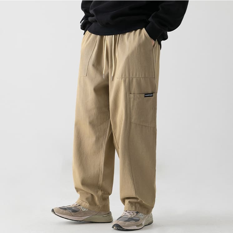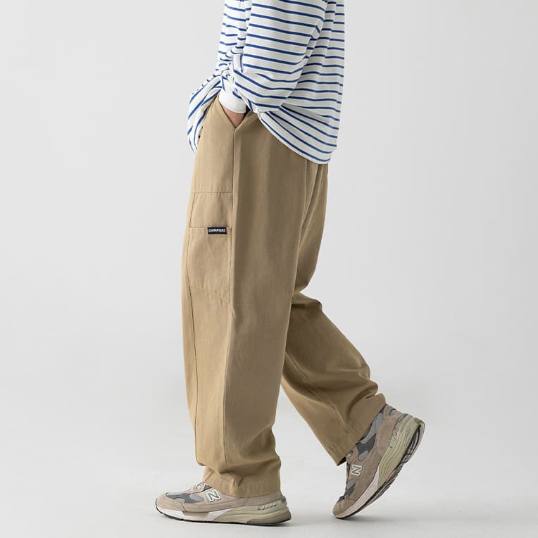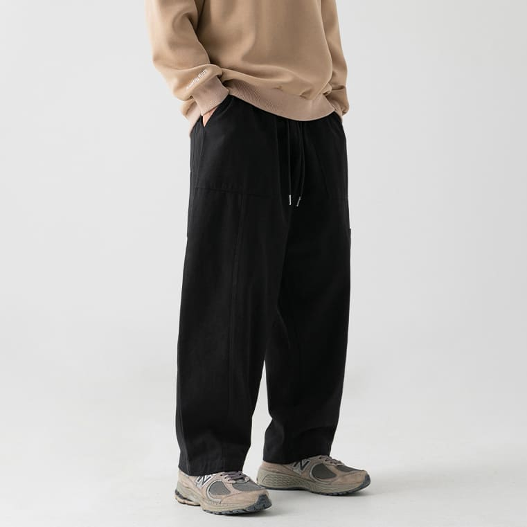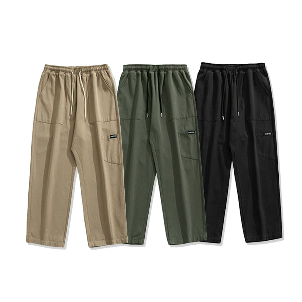 【快速出貨】現貨 直筒褲 休閒褲 休閒長褲 鬆緊褲 長褲 寬鬆直筒褲 褲子男 純色褲 九分褲 男生長褲 寬褲