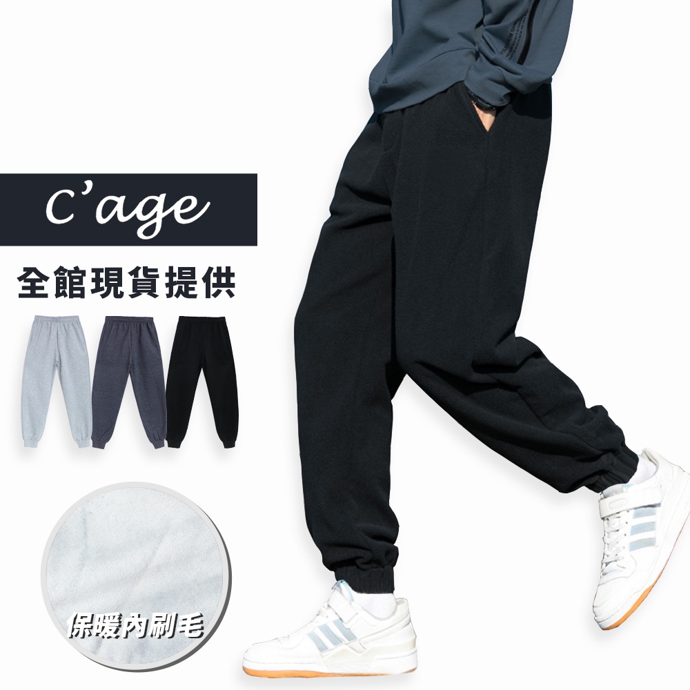 【快速出貨】現貨 寬鬆厚棉褲 素色刷毛運動長褲 寬鬆棉褲 素長褲 鬆緊褲 刷毛褲 保暖棉褲 刷毛 長棉褲 97901