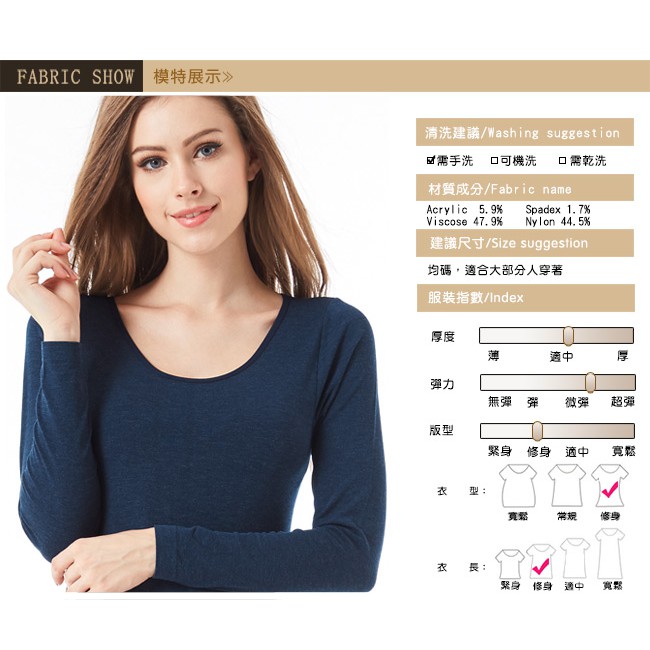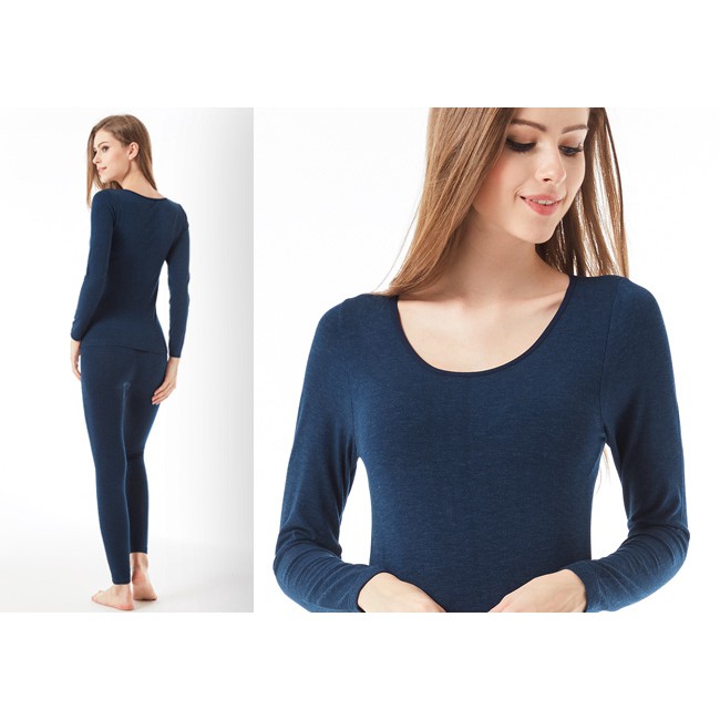 EROSBODY 女日本機能纖維平織衛生衣保暖發熱衣 午夜藍