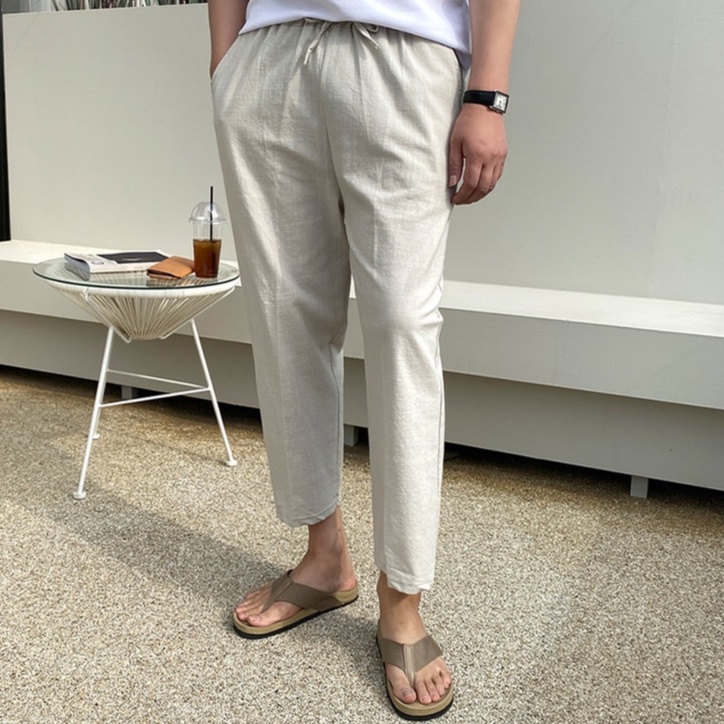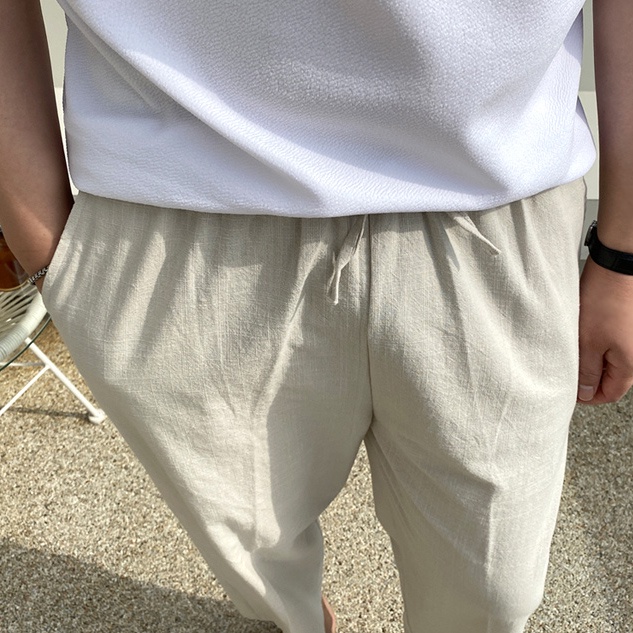 正韓簡約綁帶麻料休閒九分褲 5色 YUPPIE 預購商品 0503