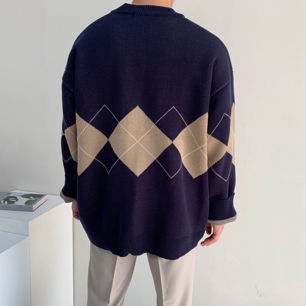 正韓秋冬V領菱形格紋拼接色針織開衫外套 4色 1206 YUPPIE 現貨商品