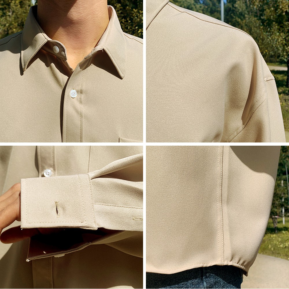 正韓熱銷款 純色素面小落肩口袋長袖襯衫 13色 YUPPIE 預購商品