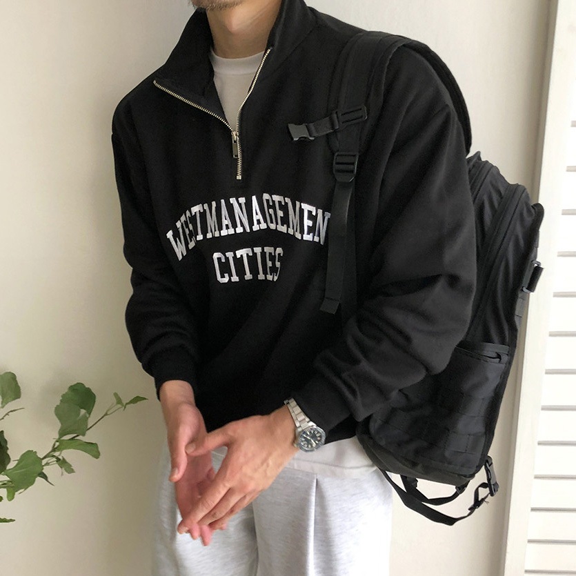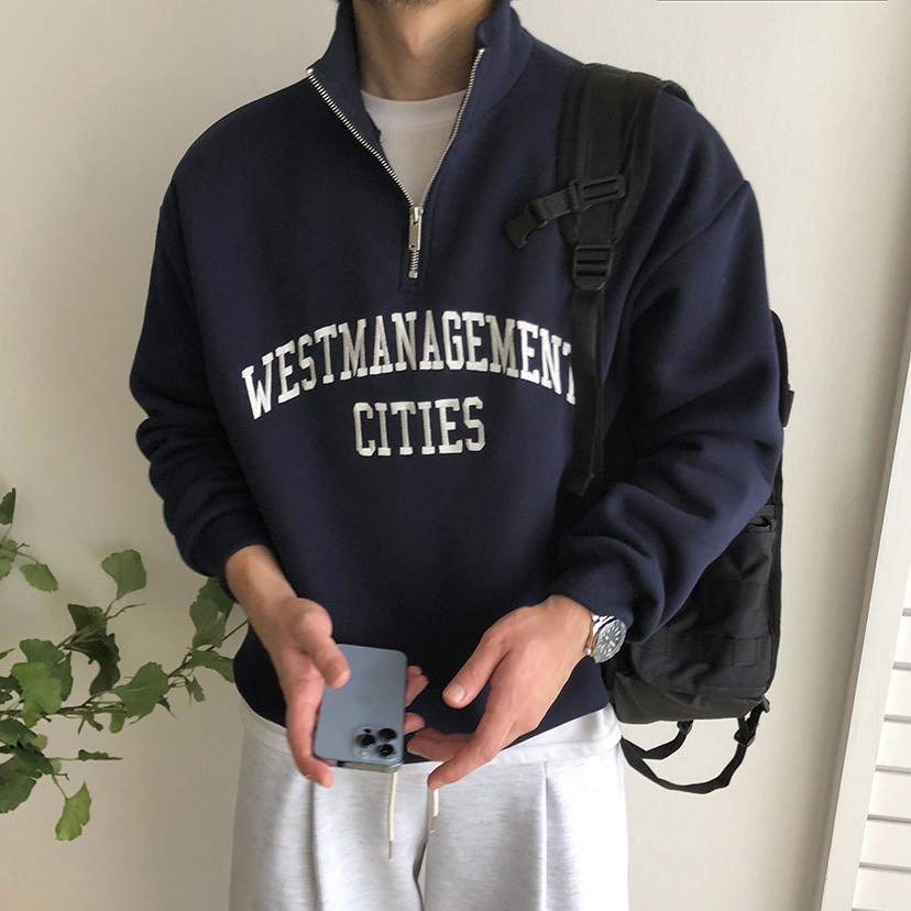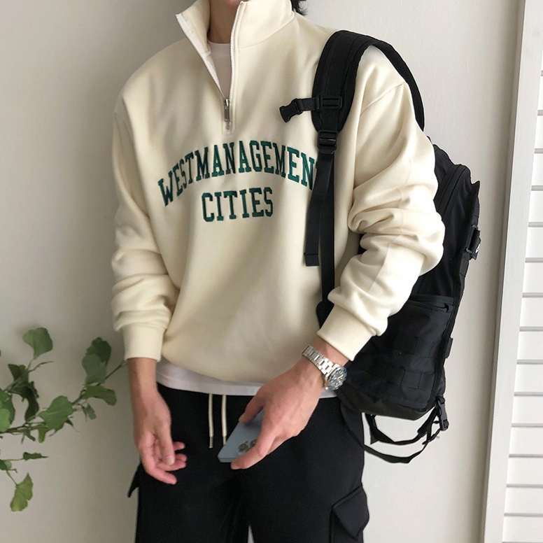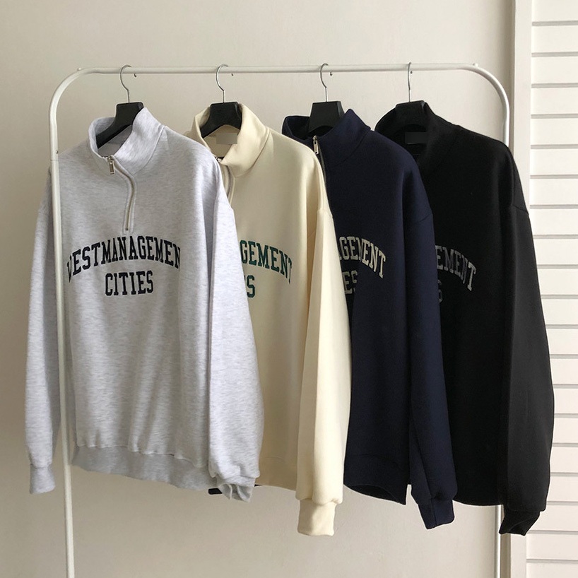 正韓日常cities半拉鍊字母刺繡拉絨衛衣 4色 YUPPIE 最後現貨