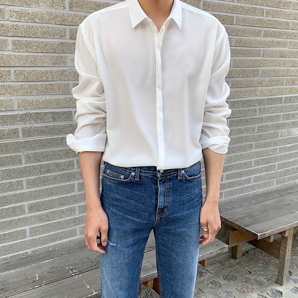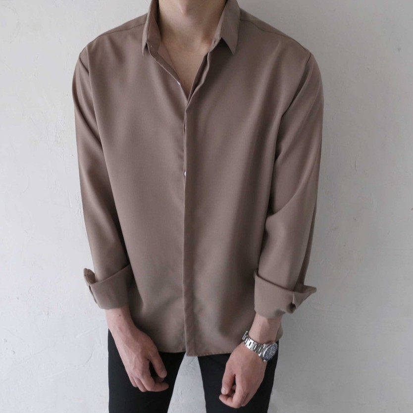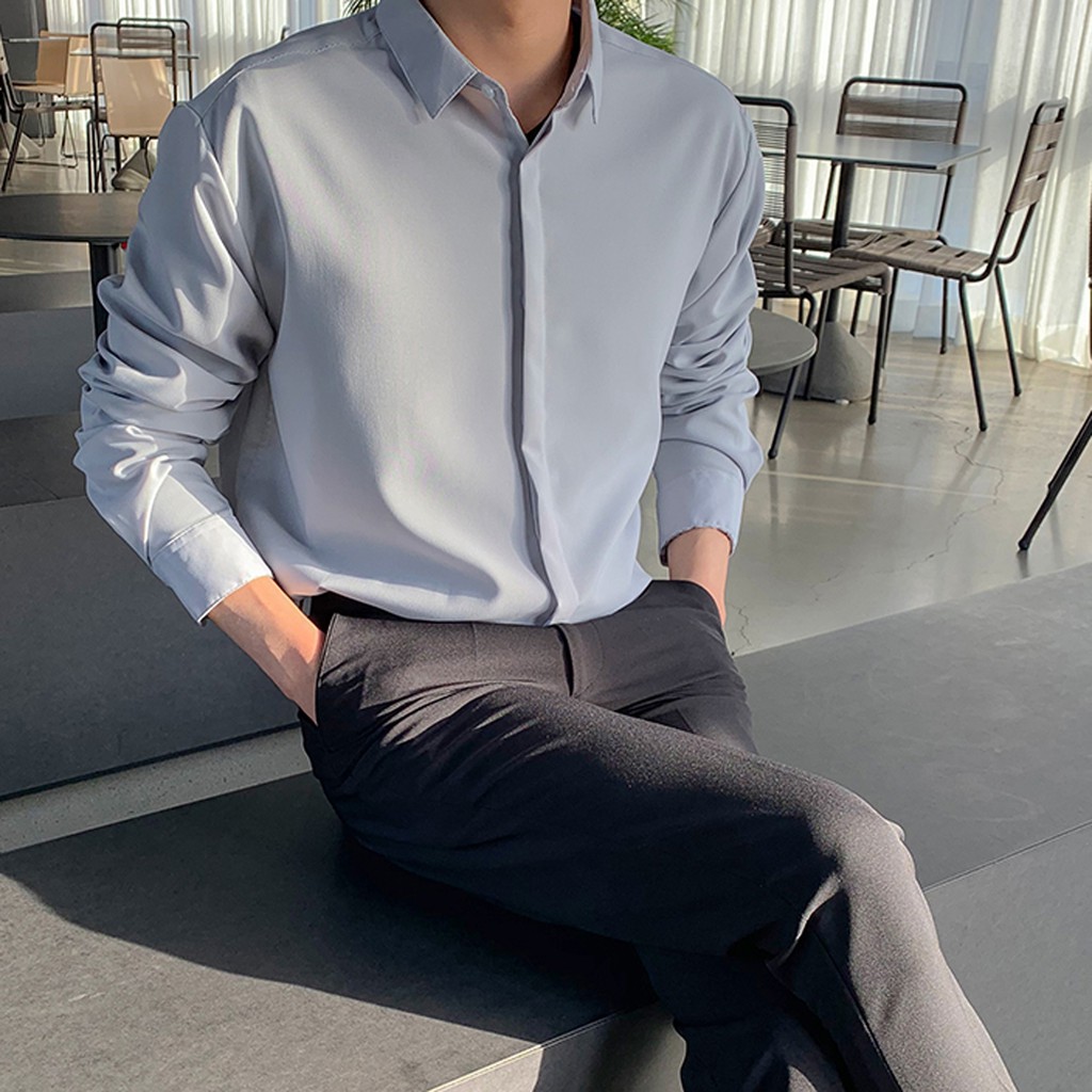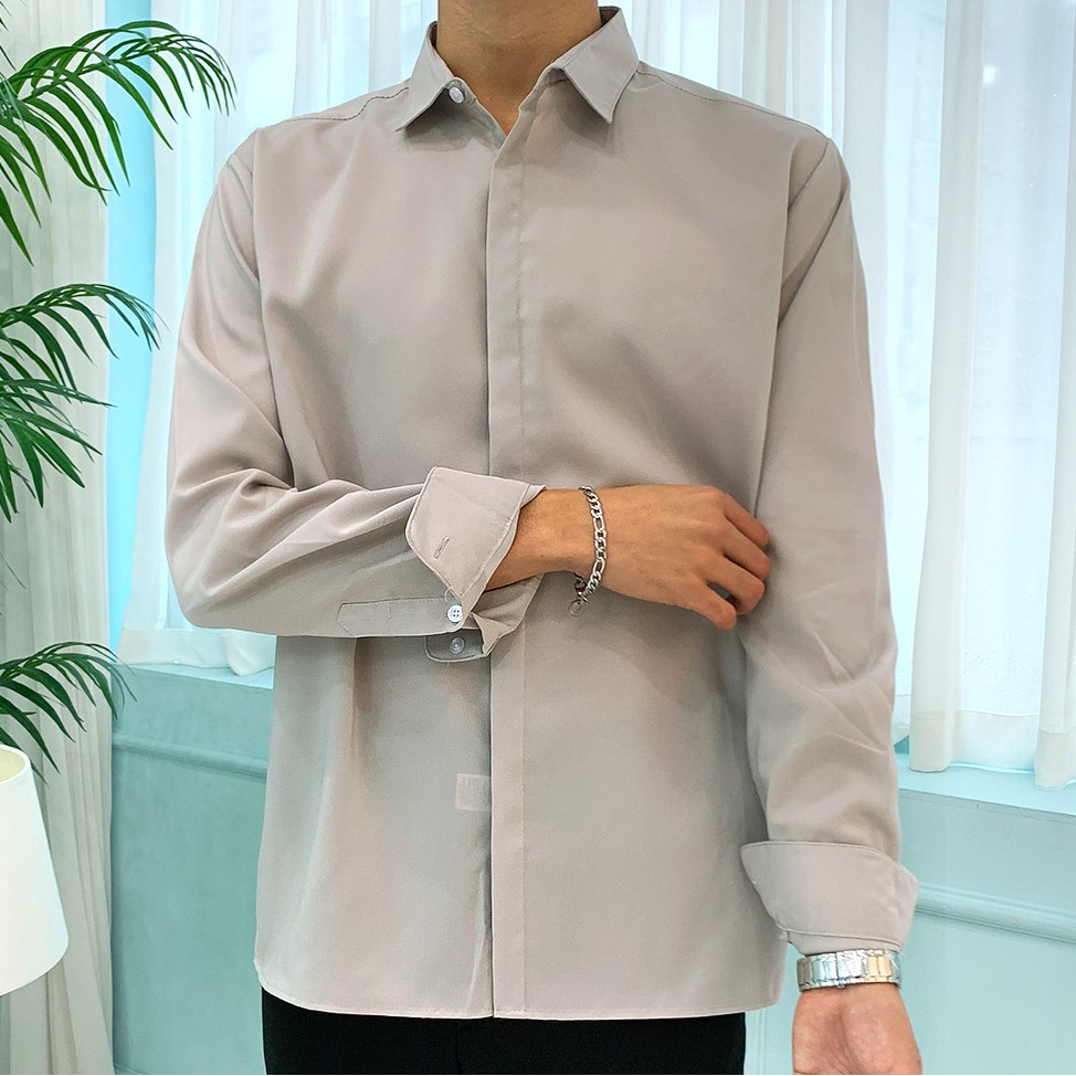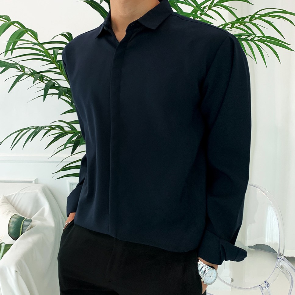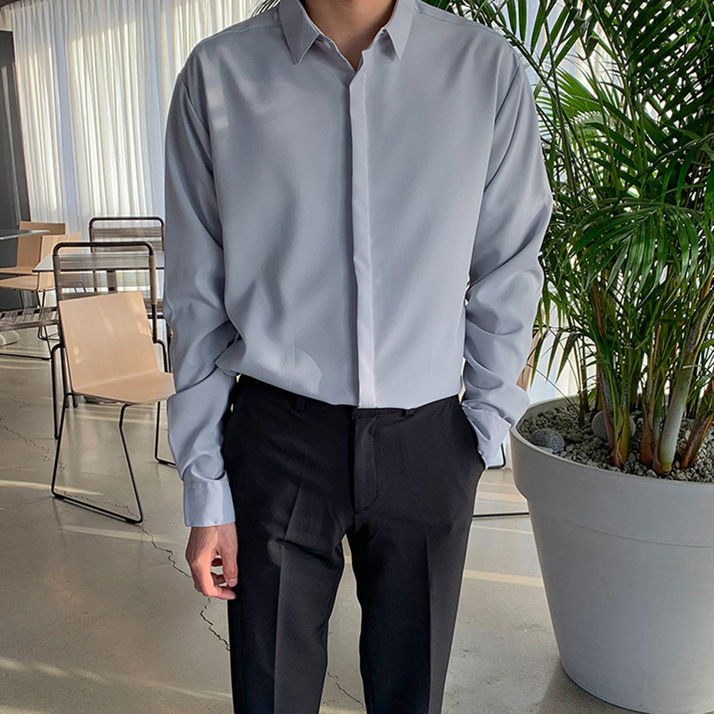 正韓素面隱藏扣長袖襯衫 雪紡暗扣襯衫 7色 (314) YUPPIE 預購商品