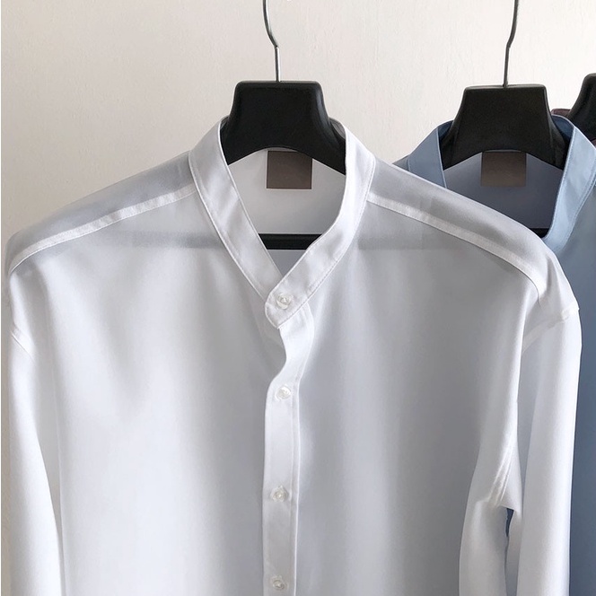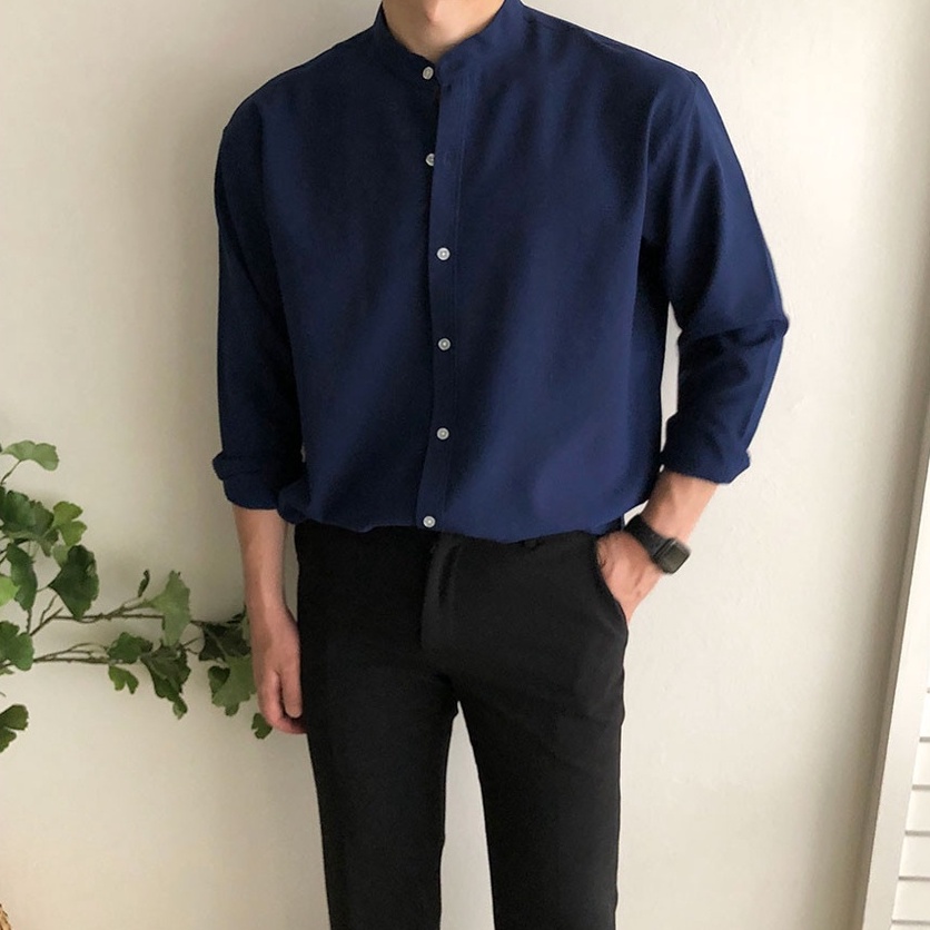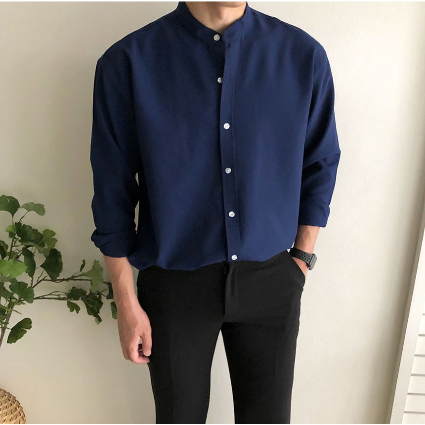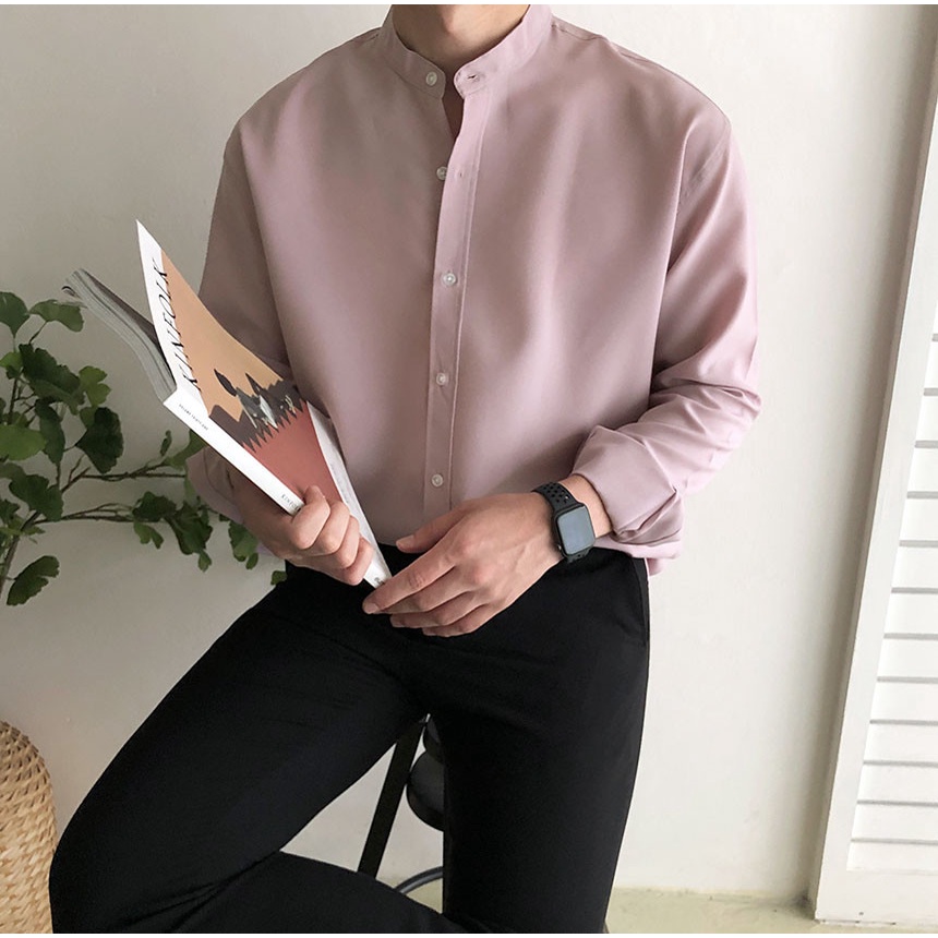 正韓夏季寬鬆亨利領長袖襯衫 4色 YUPPIE 最後現貨