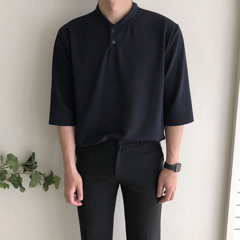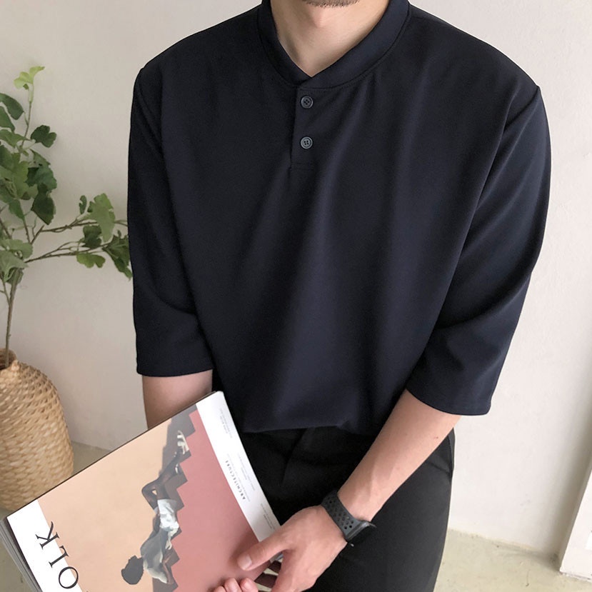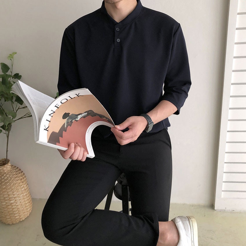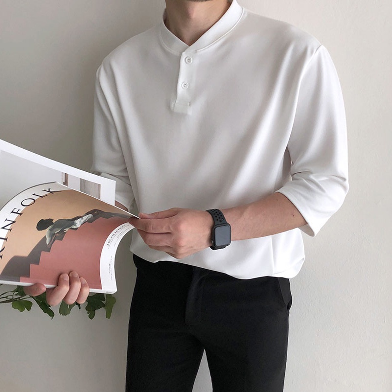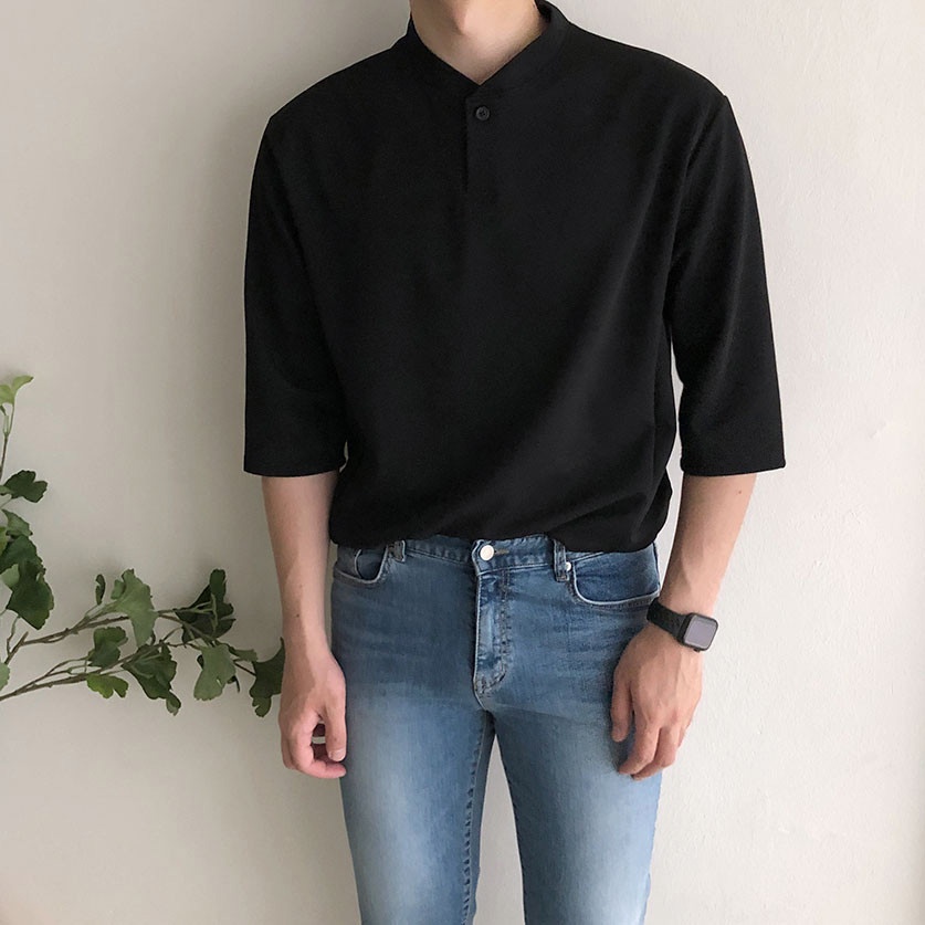 正韓華夫格編織 兩粒扣亨利領 七分袖 3色 YUPPIE 預購商品 0822