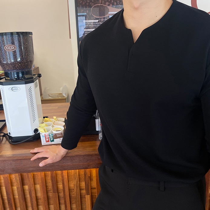 正韓合身感開衩小V領長袖上衣 4色 YUPPIE 預購商品 0912