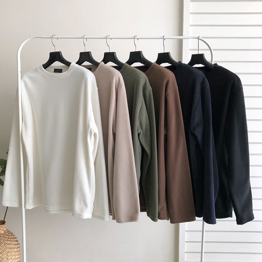 正韓基本圓領純色拉絨質感長袖上衣 6色 YUPPIE 預購商品 0919