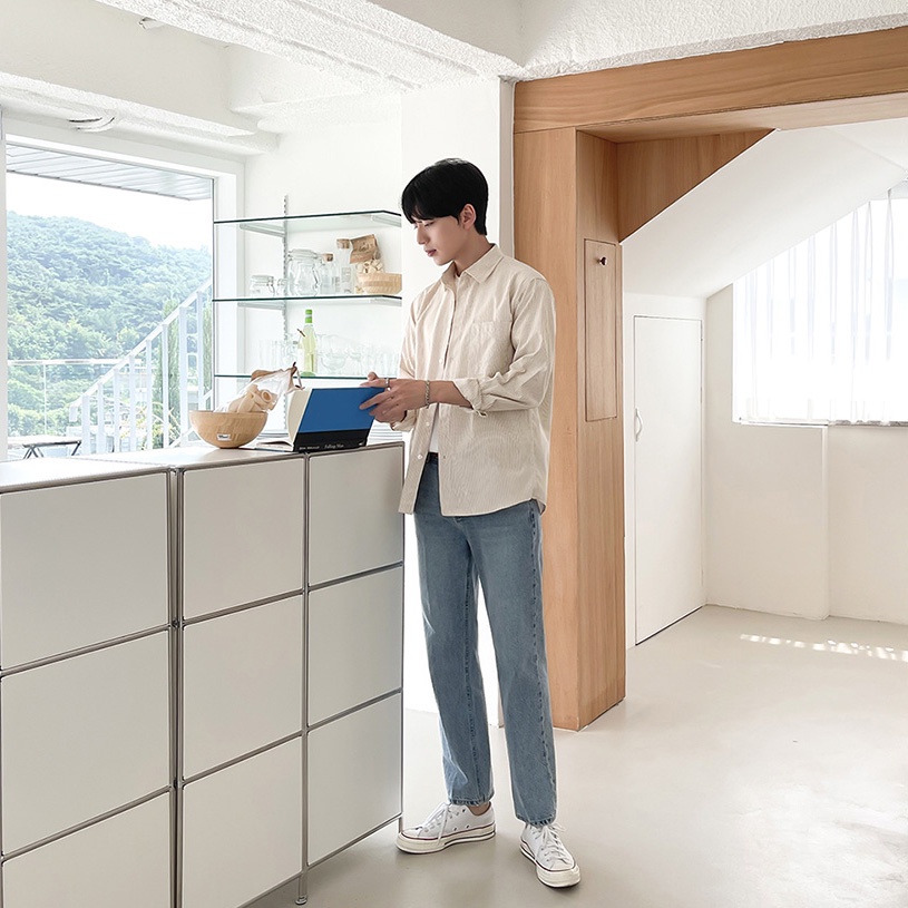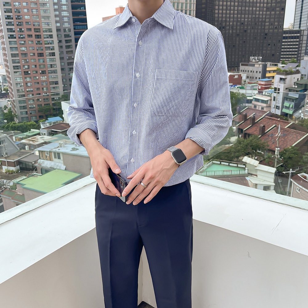 正韓細緻條紋質感單口袋長袖襯衫 3色 (604) YUPPIE 預購商品 1003