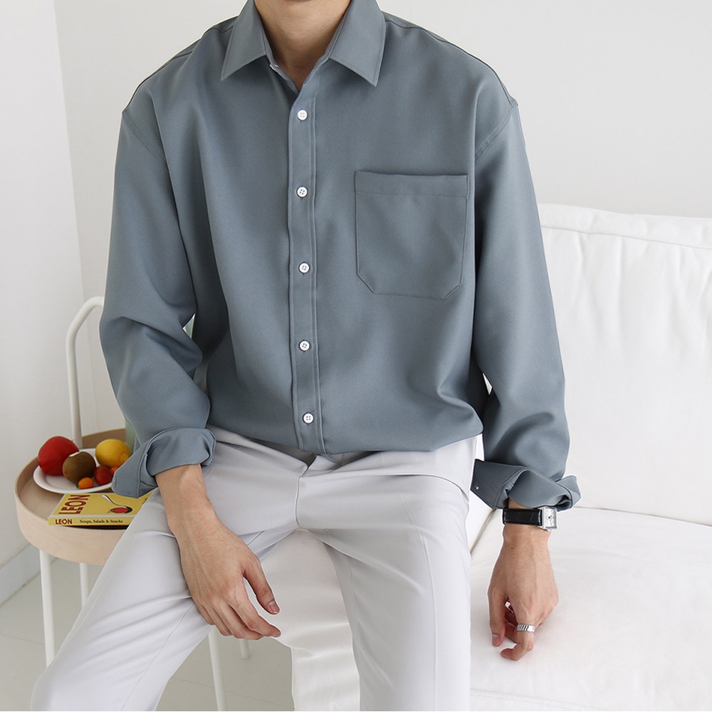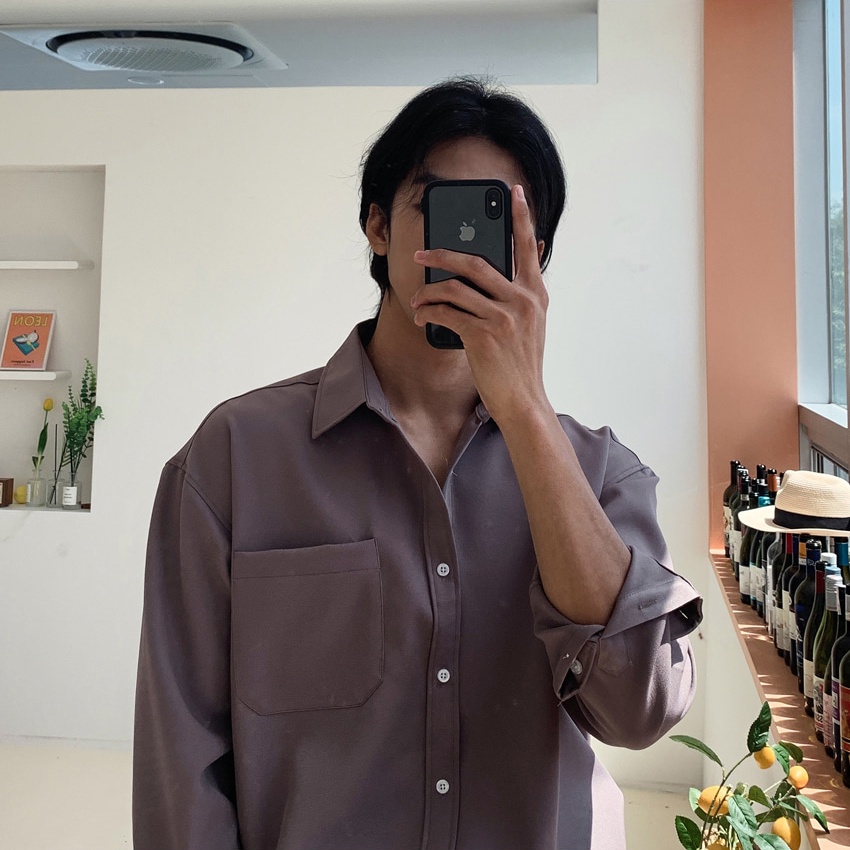 正韓熱銷款 純色素面小落肩口袋長袖襯衫13色 YUPPIE 預購商品