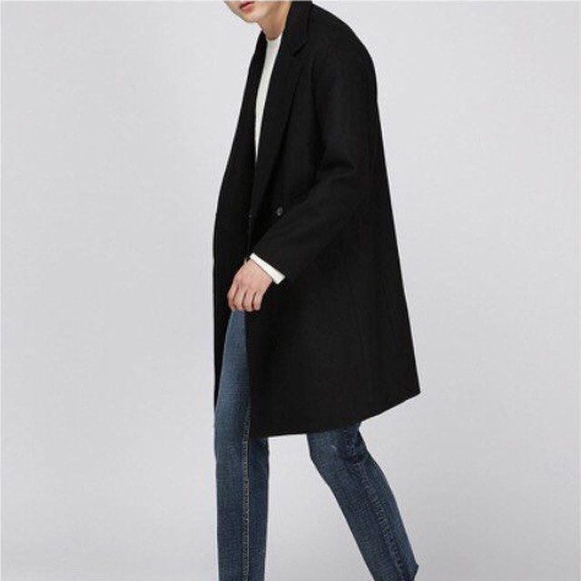 正韓羊毛混紡雙排釦大衣 中長版大衣 百搭灰色 YUPPIE 現貨出清
