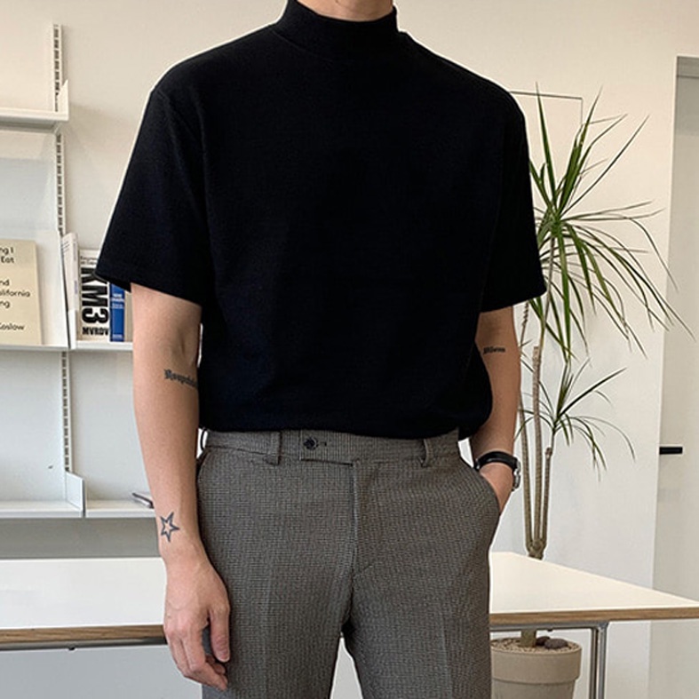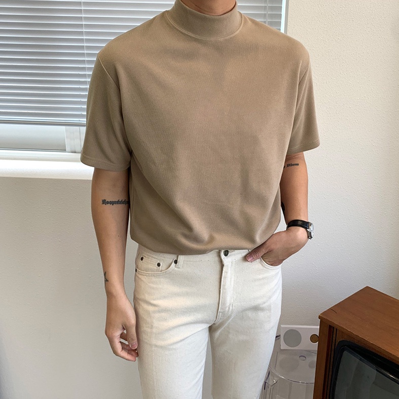 正韓薄款棉質小高領短袖上衣 6色 YUPPIE 預購商品 0129