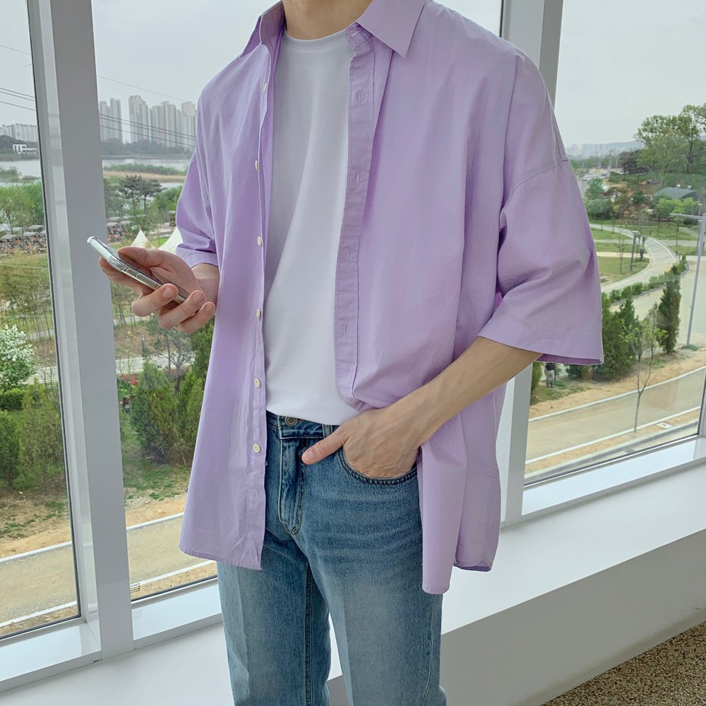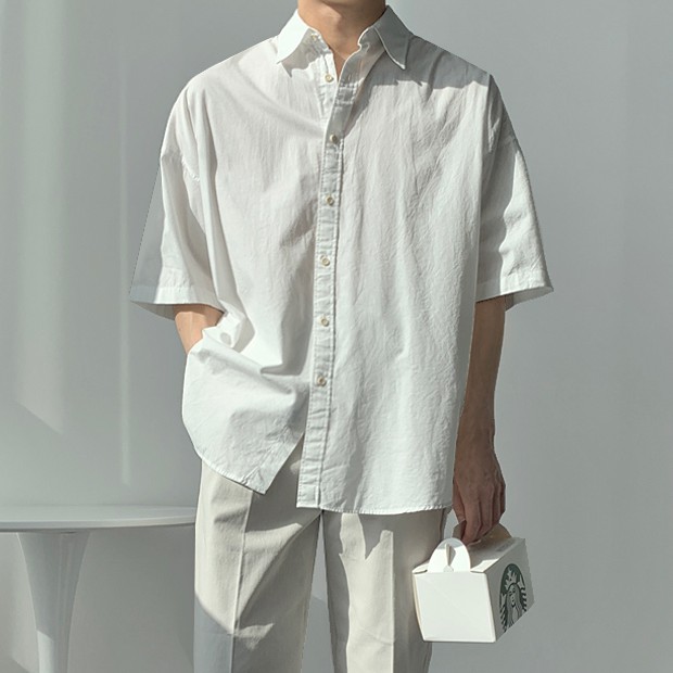正韓春夏季休閒寬鬆感純棉水洗短袖襯衫 5色 YUPPIE 預購商品 0503