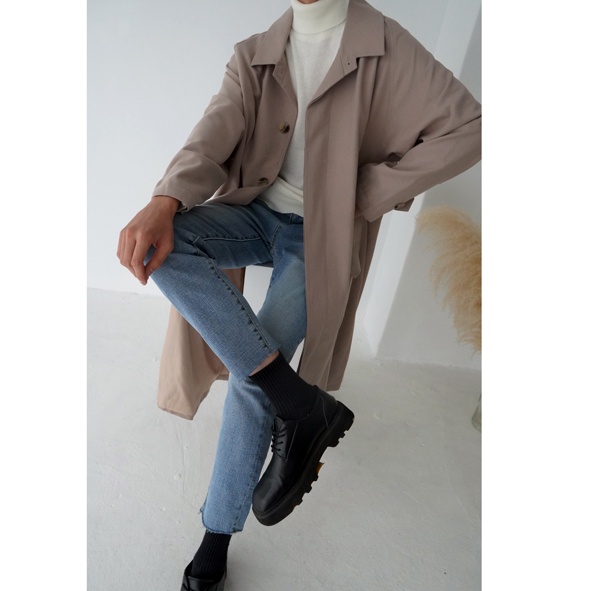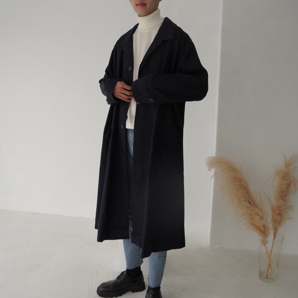 正韓簡約素色隱藏釦長版風衣外套 2色 YUPPIE 現貨出清