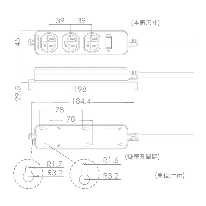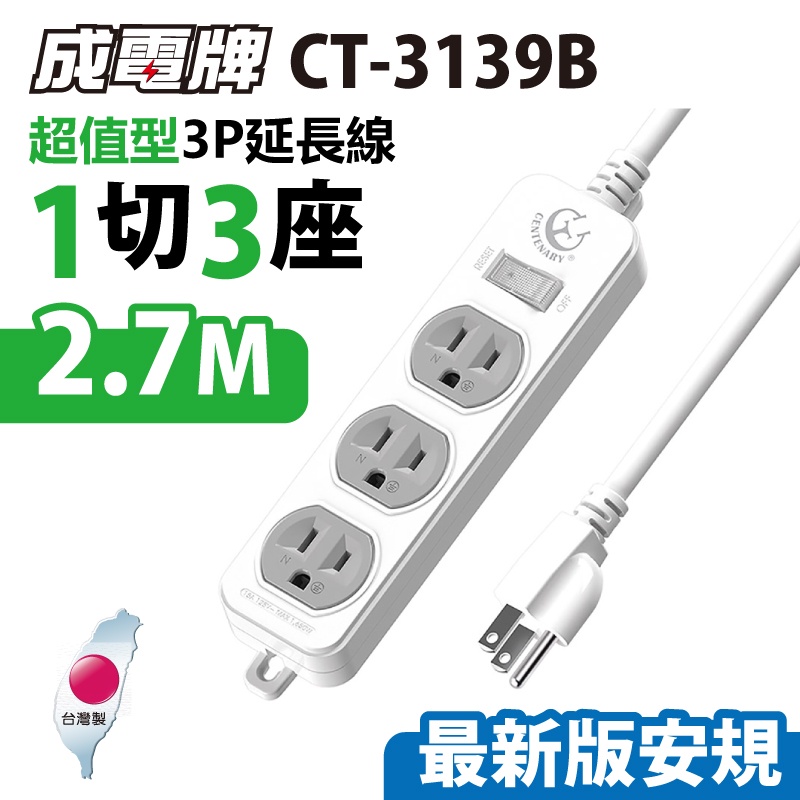 成電牌 超值型3P延長線1切3座(CT-3139B)