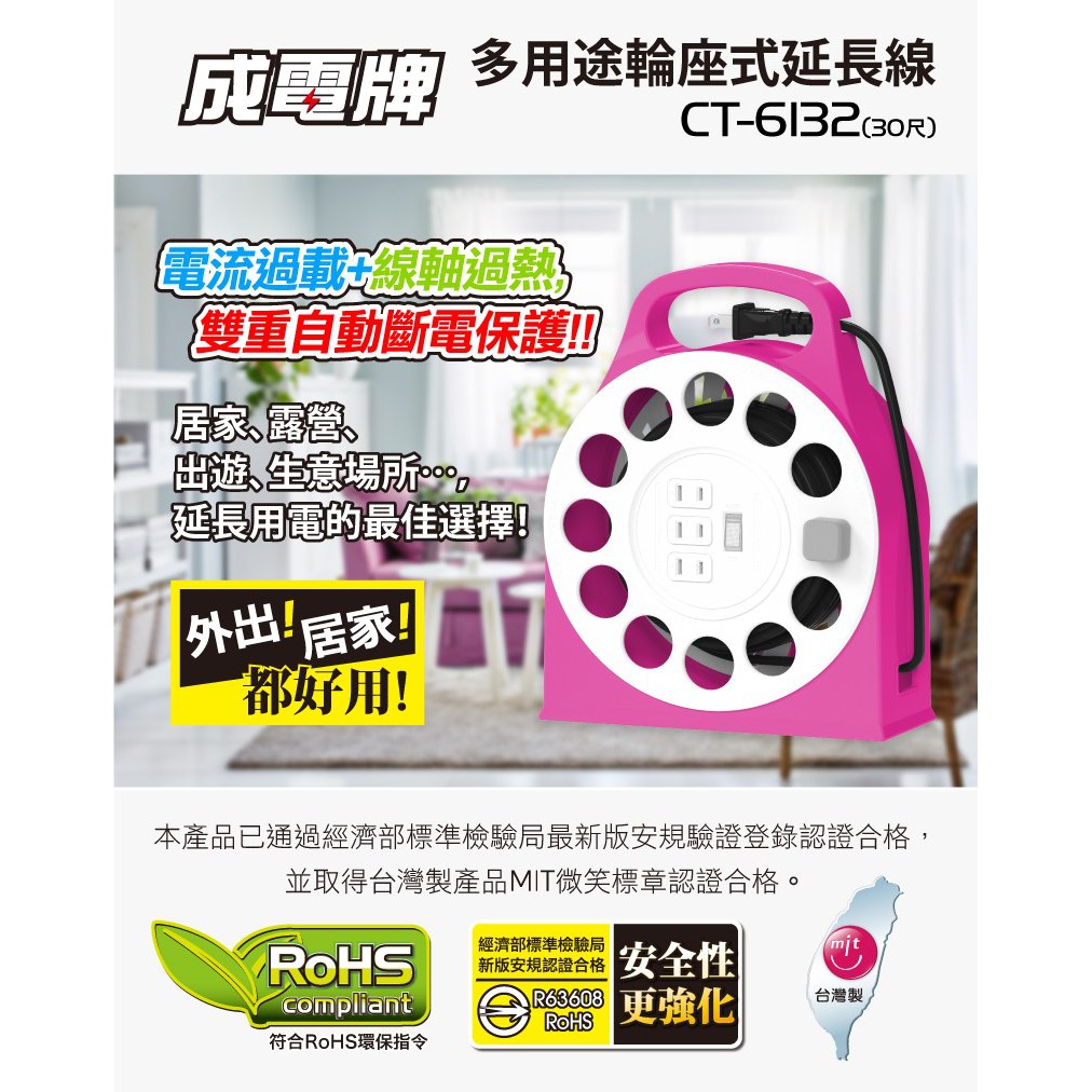 【成電牌】2P輪座式延長線1切3座(CT-6132)
