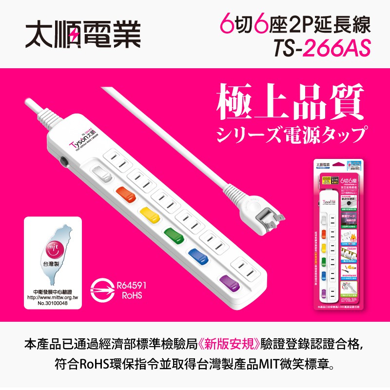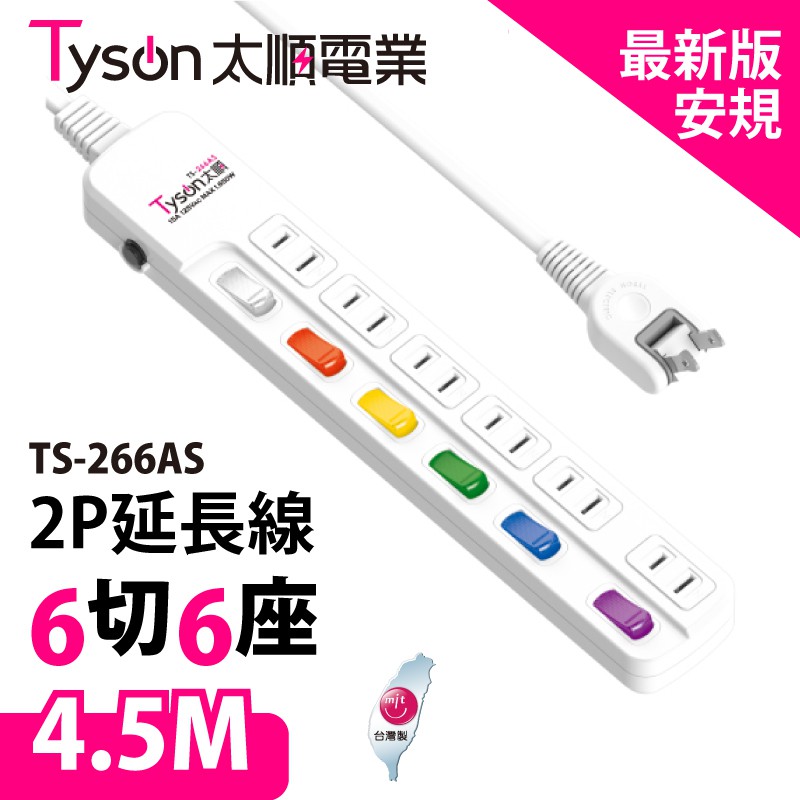 Tyson太順電業 6切6座2P延長線(TS-266AS)
