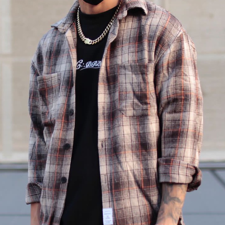 【CABRON】BON BON VT Flannel Checkered Shirt #0579 9分袖毛呢格紋襯衫