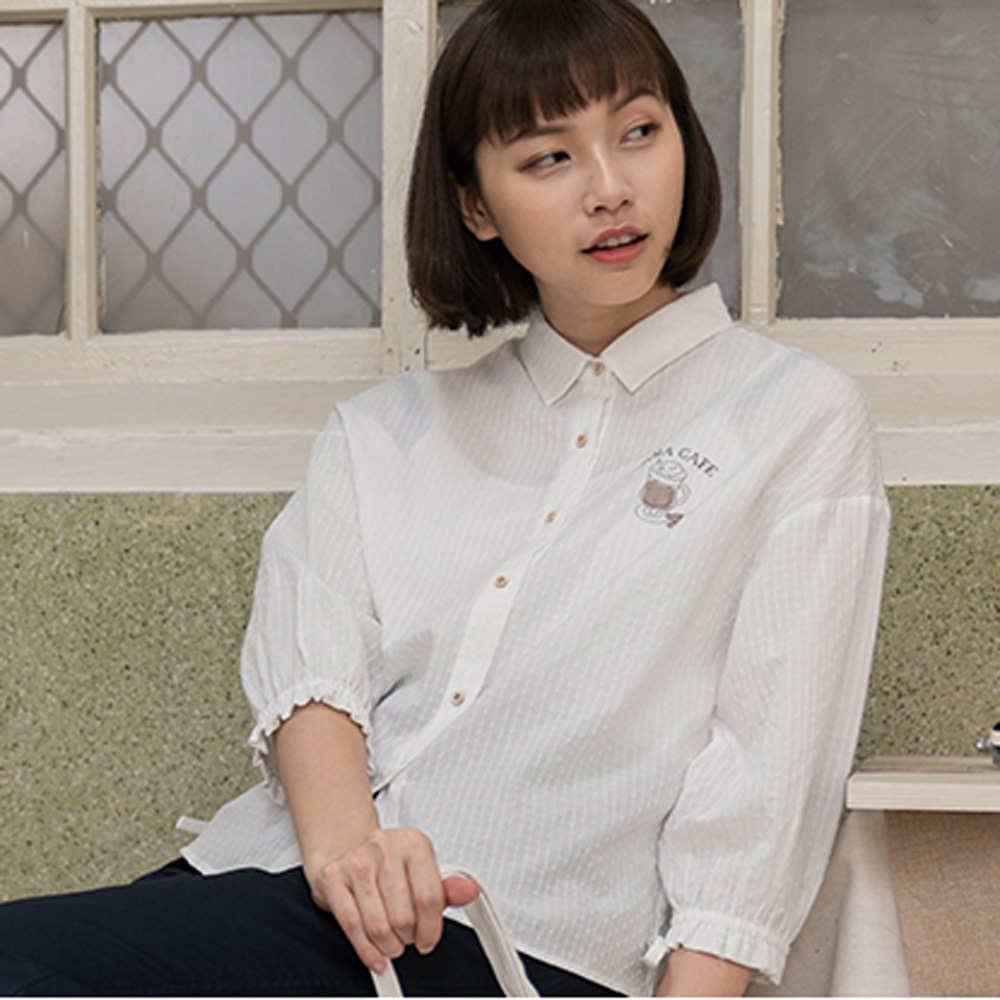 【Hana Mokuba】花木馬日系女裝立體點點七分袖抽繩襯衫