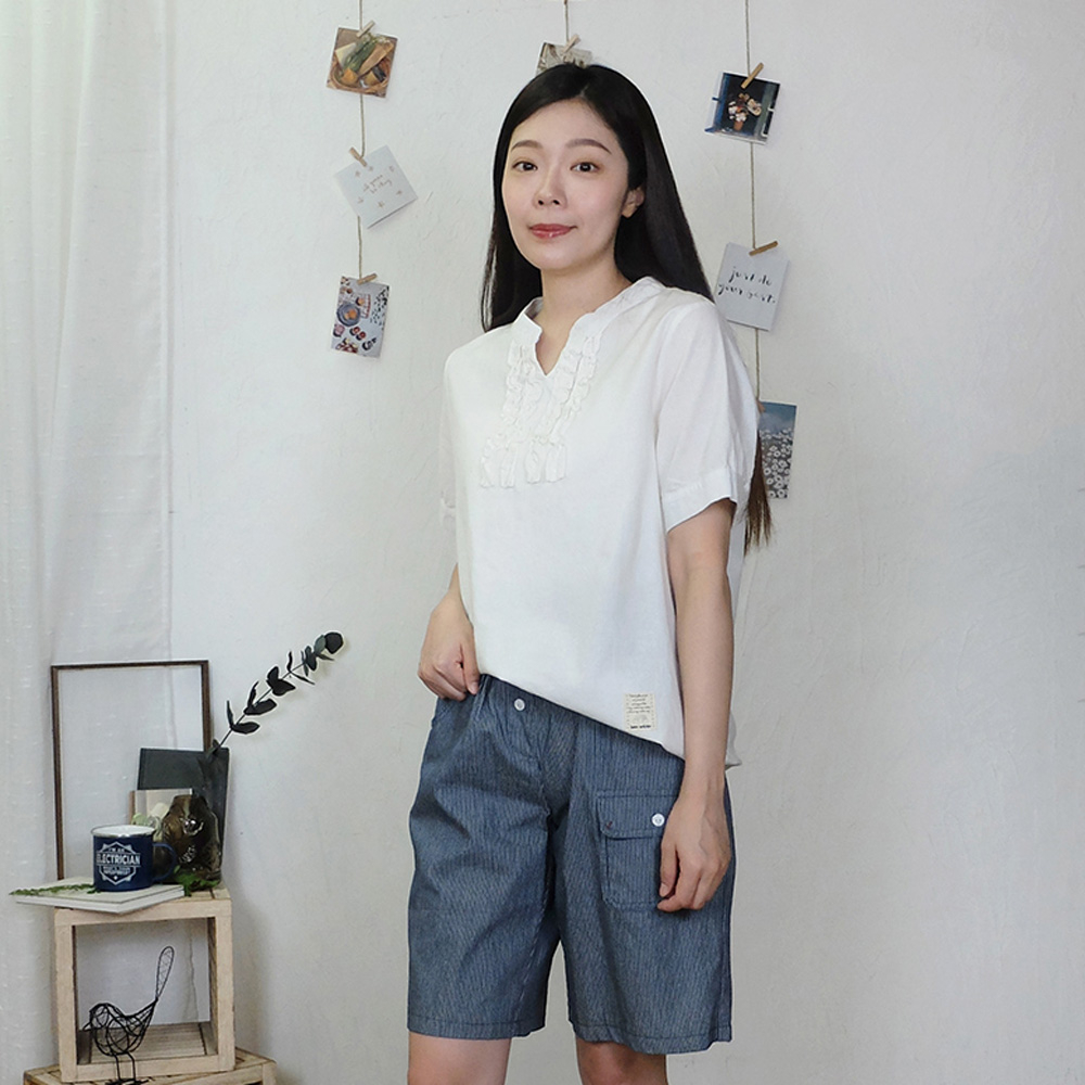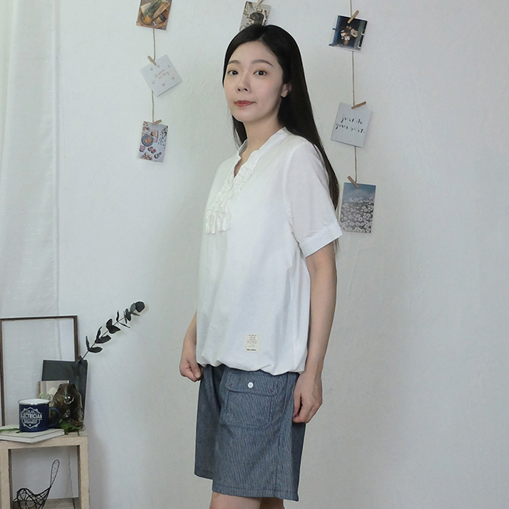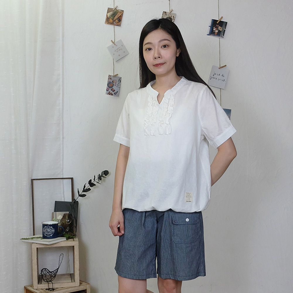 Hana Mokuba 花木馬日系女裝荷葉邊裝飾鬆緊下襬休閒上衣