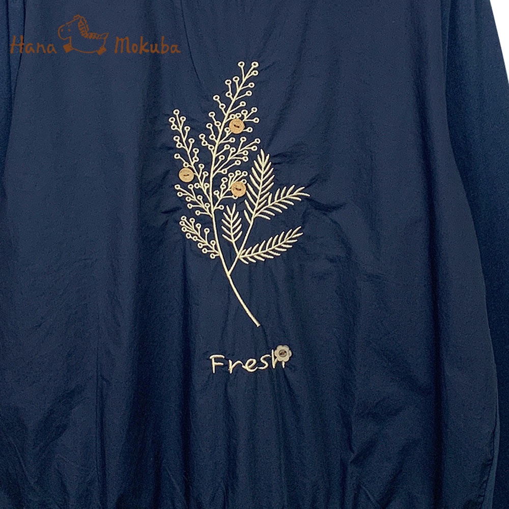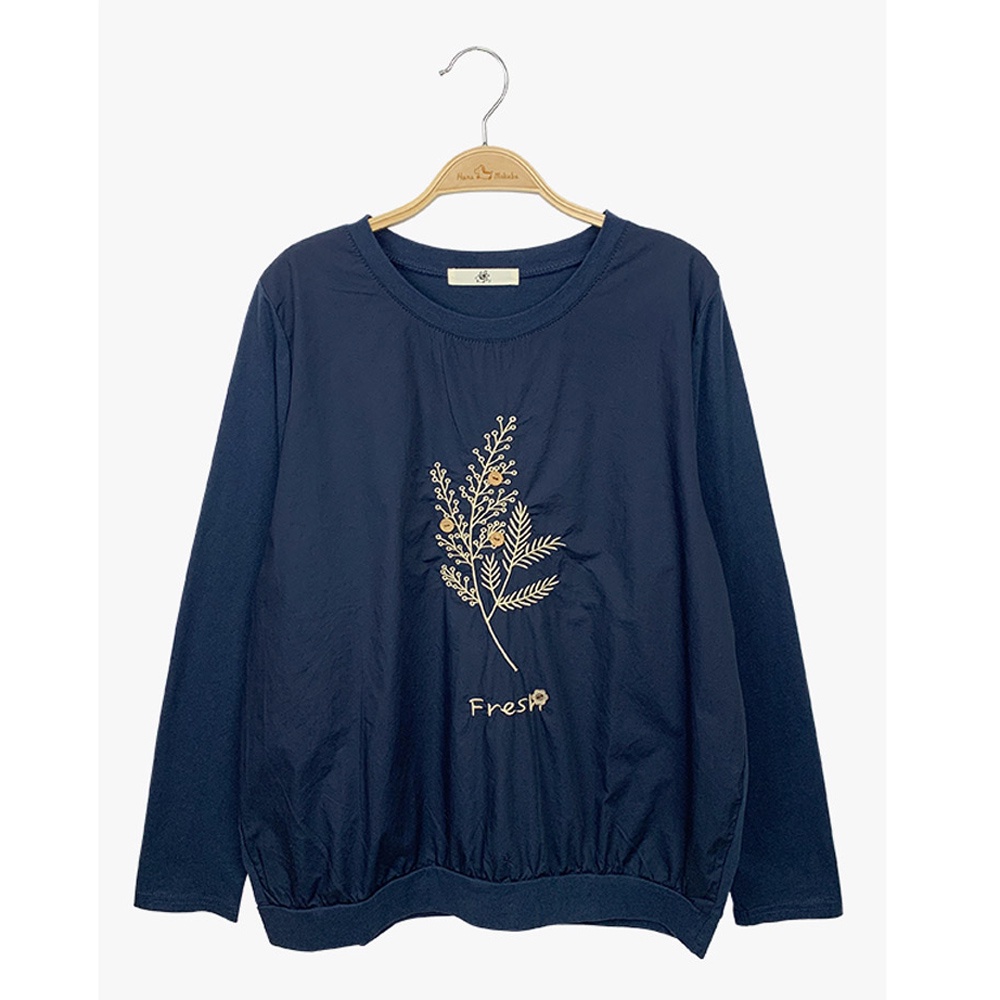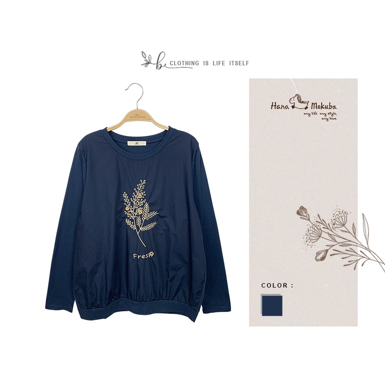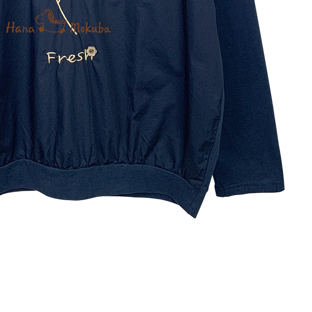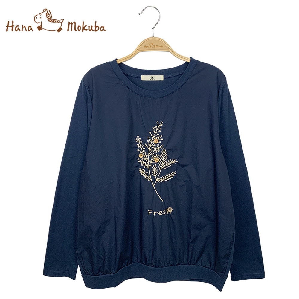 【Hana Mokuba】花木馬日系女裝細緻繡花立體紐扣裝飾針梭織拼接圓領T恤