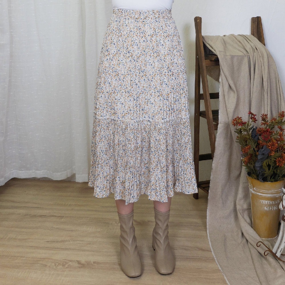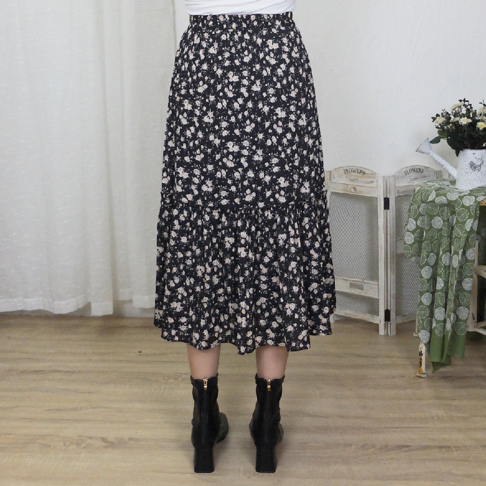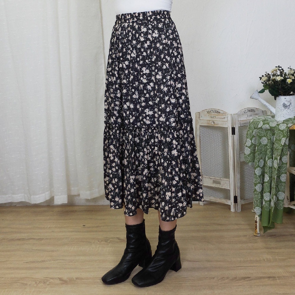 花木馬日系女裝鬆緊腰層次碎花氣質長裙
