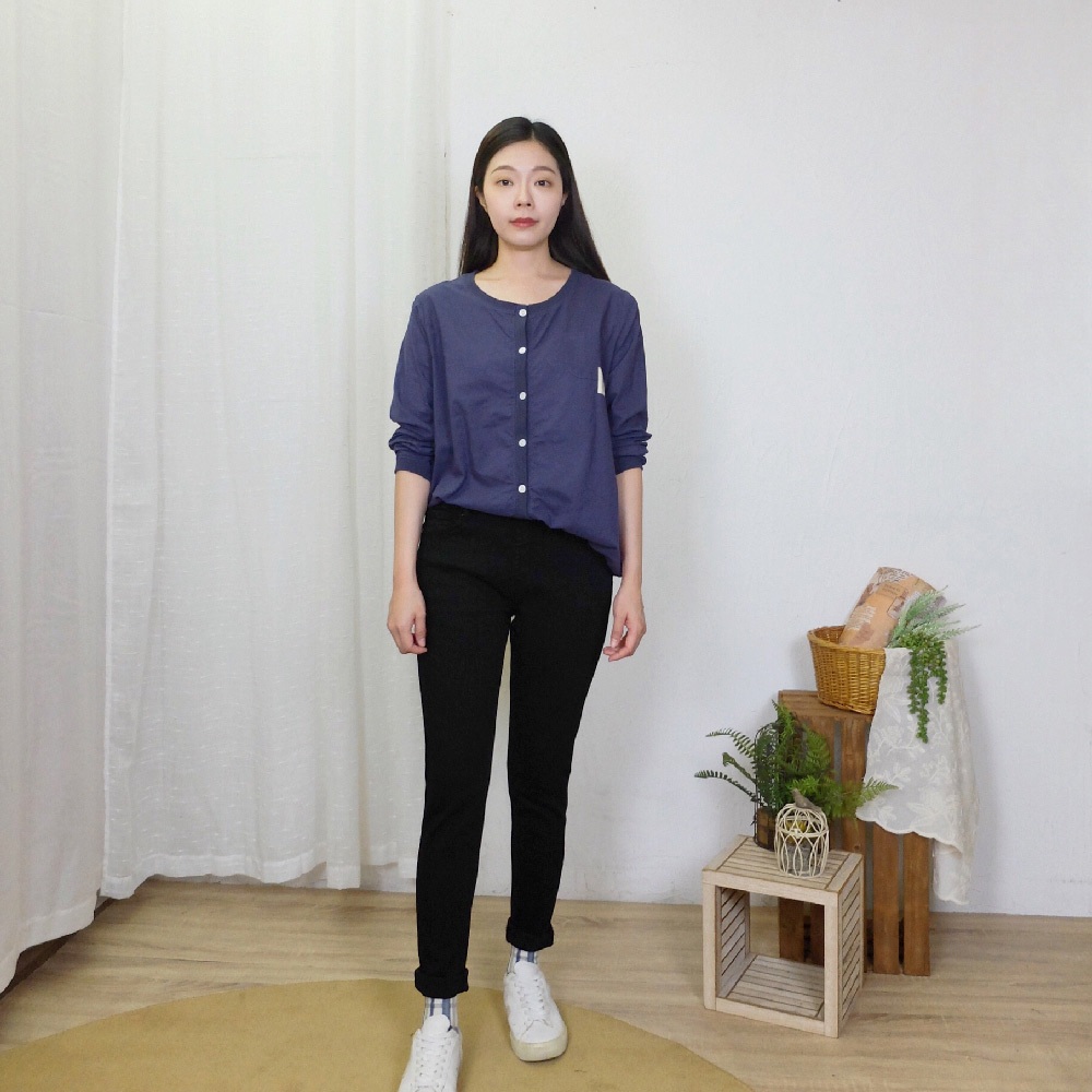 花木馬日系女裝排釦門襟羅文收口長袖上衣