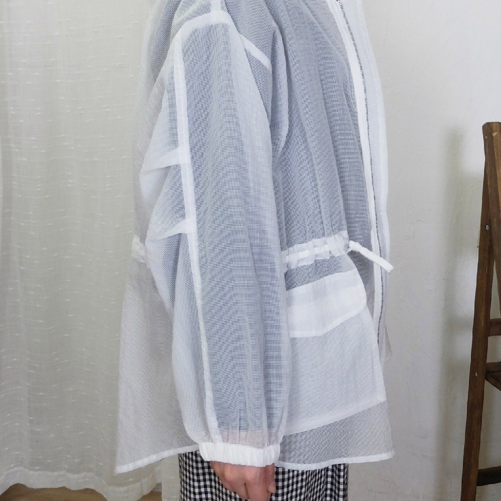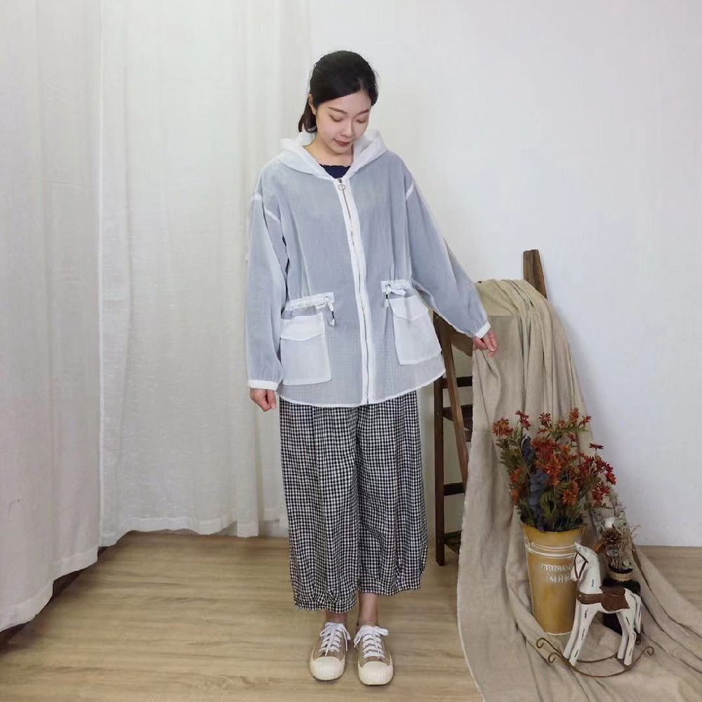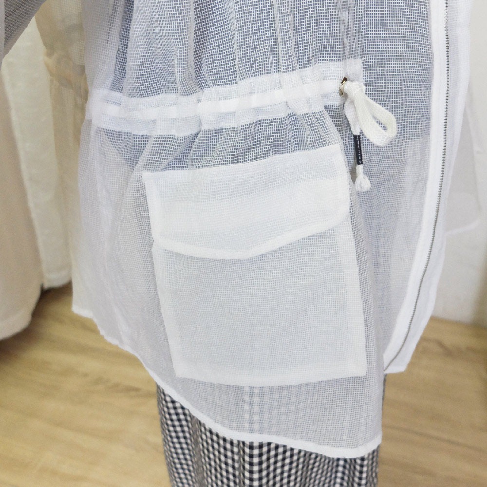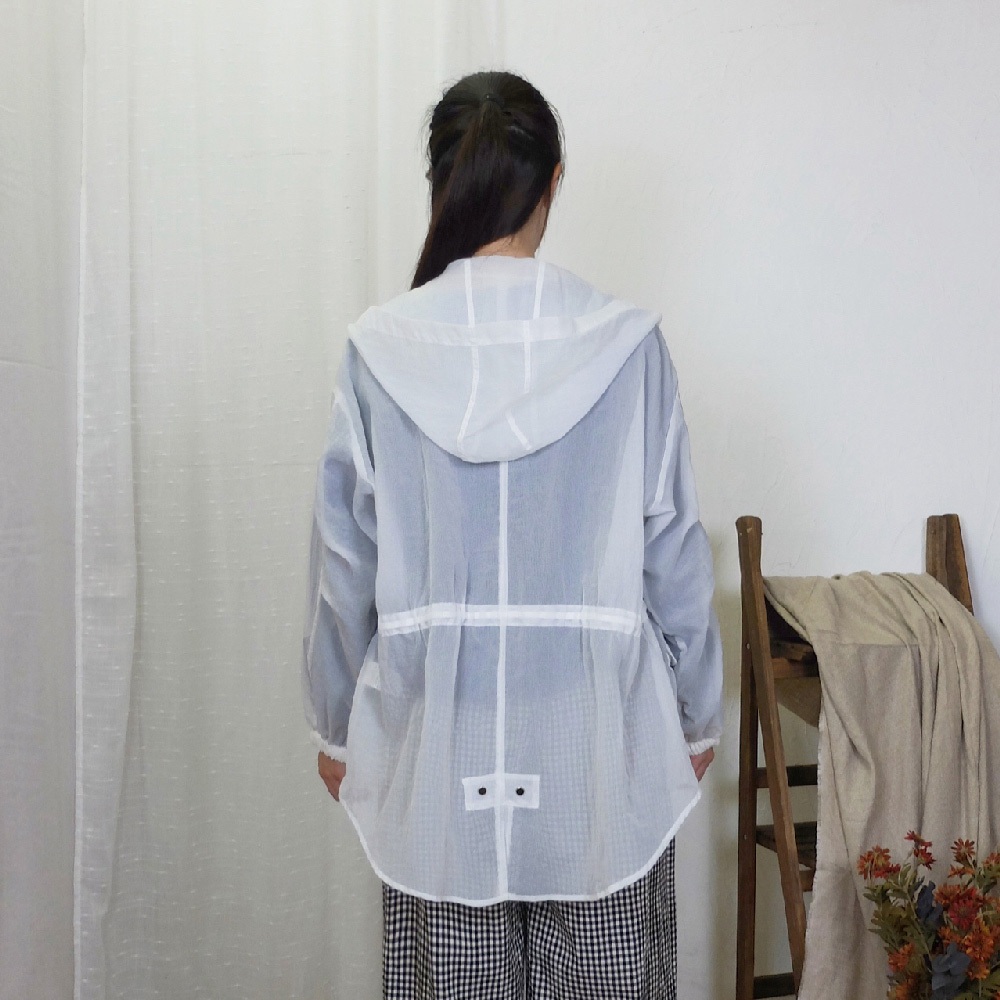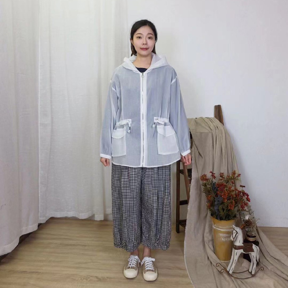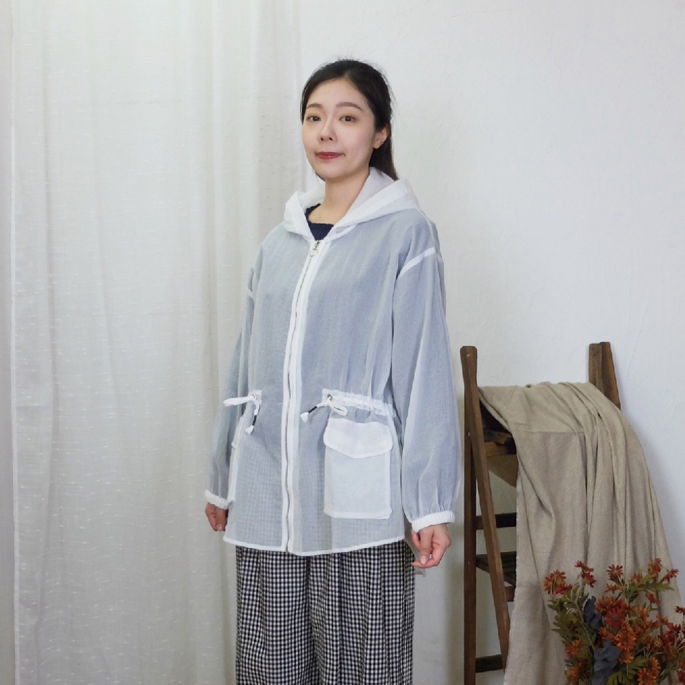 花木馬日系女裝前短後長半透紗網綁帶收腰寬鬆連帽外套