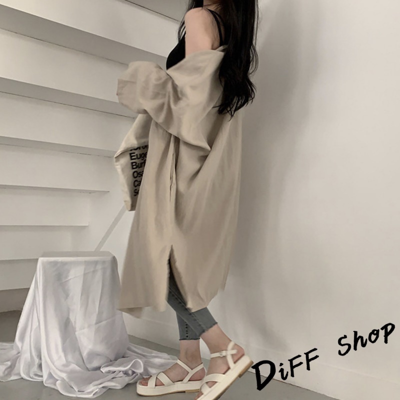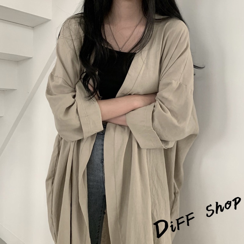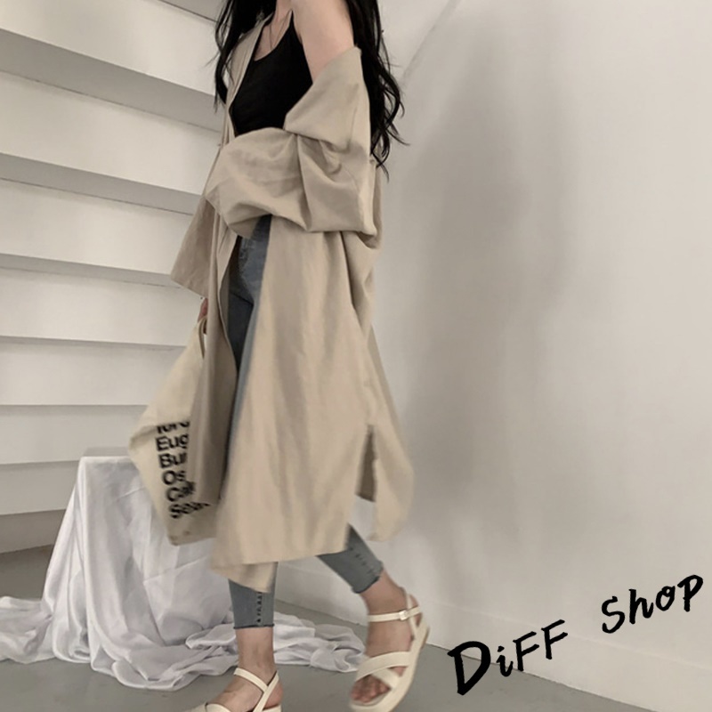 【DIFF】韓版慵懶寬鬆中長款外套 風衣 大衣 上衣 女裝 衣服 薄外套 罩衫 防曬外套 長袖上衣 長版外套【J172】