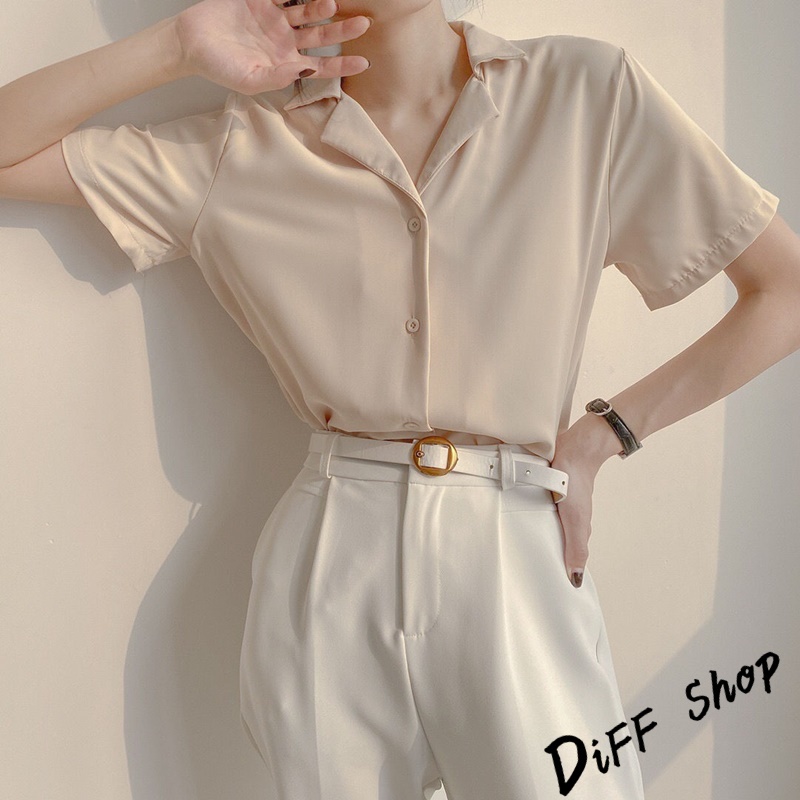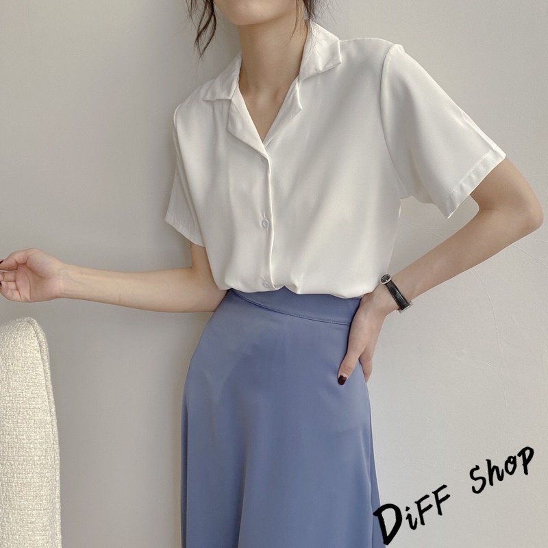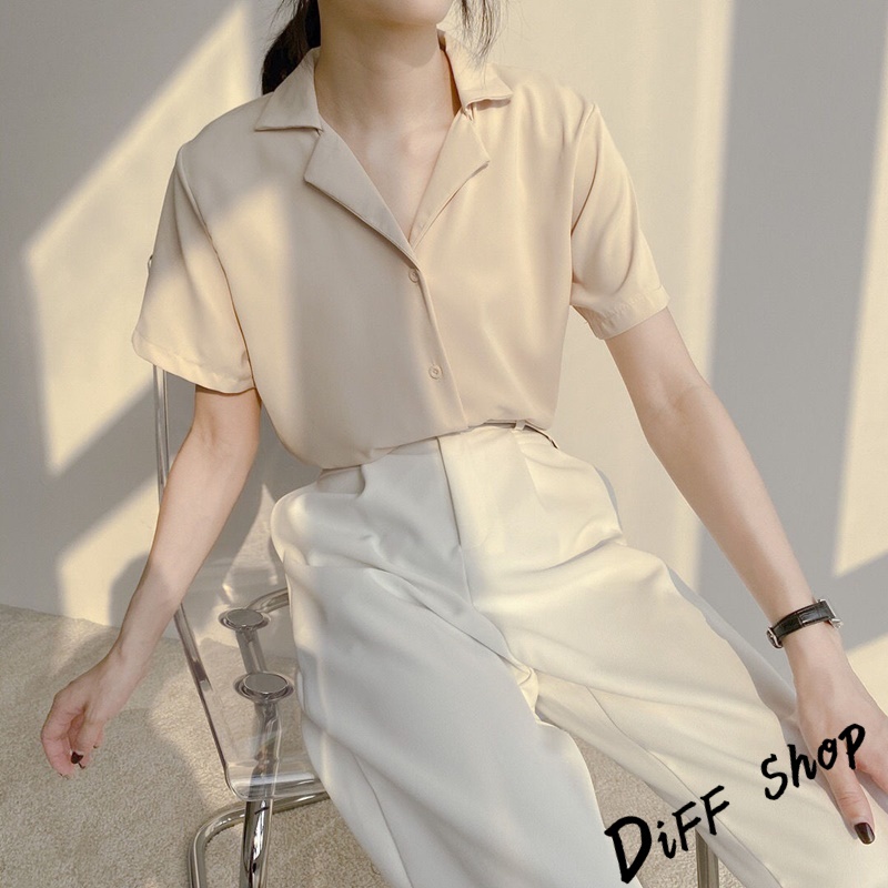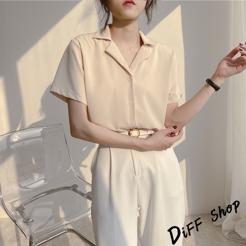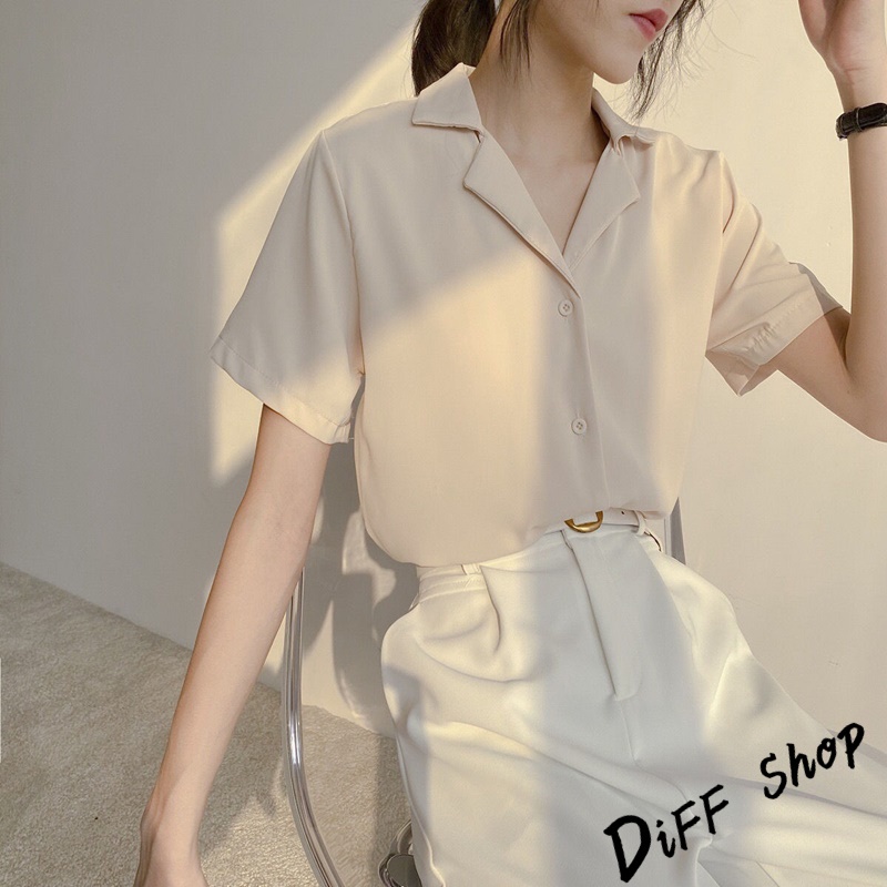 【DIFF】韓版氣質v領寬鬆雪紡襯衫 短袖上衣 短袖t恤 女裝 顯瘦上衣 衣服 寬鬆上衣 素T【T269】