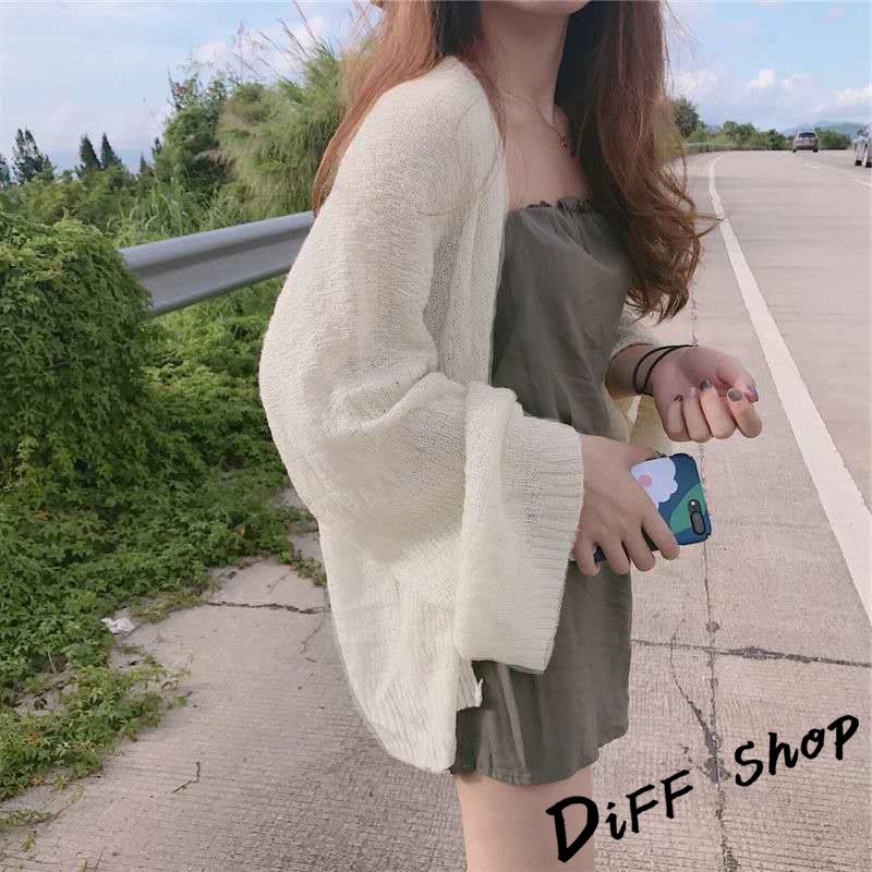 【DIFF】韓版慵懶薄款針織外套 防曬外套 百搭外套 上衣 女裝 衣服 外套 薄外套 罩衫 長袖上衣 長版外套【J80】
