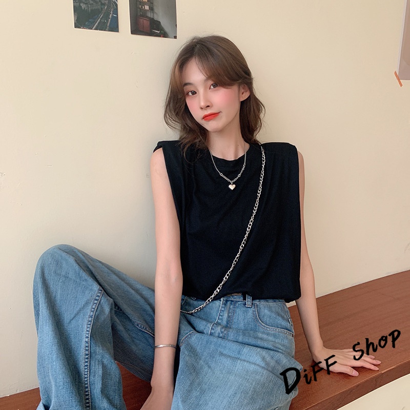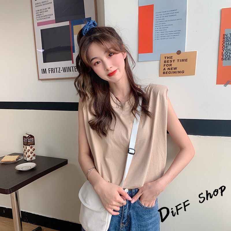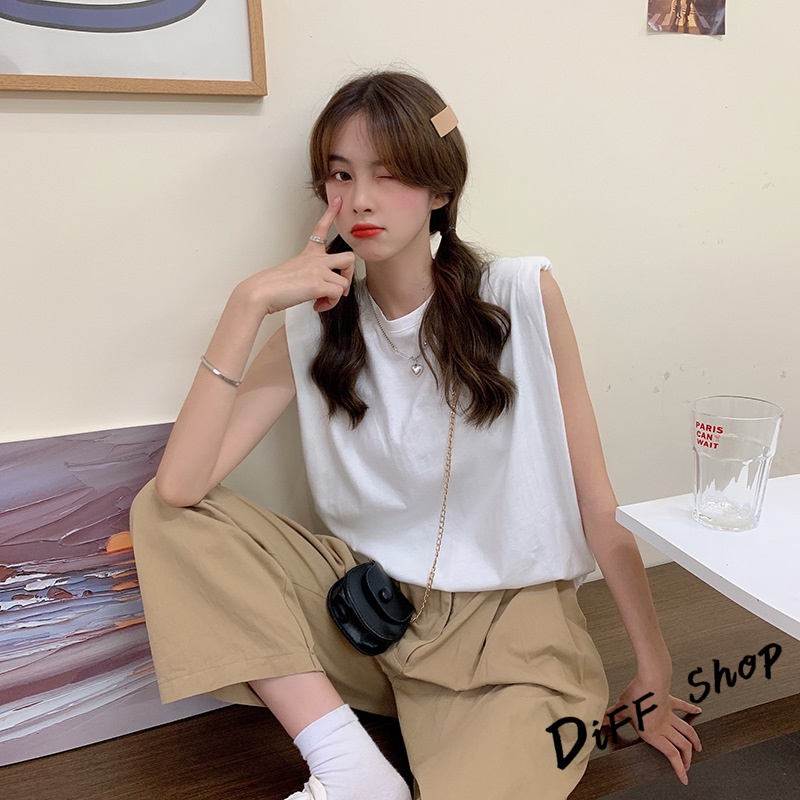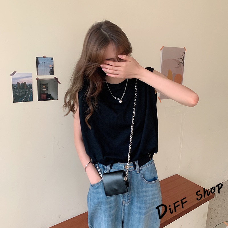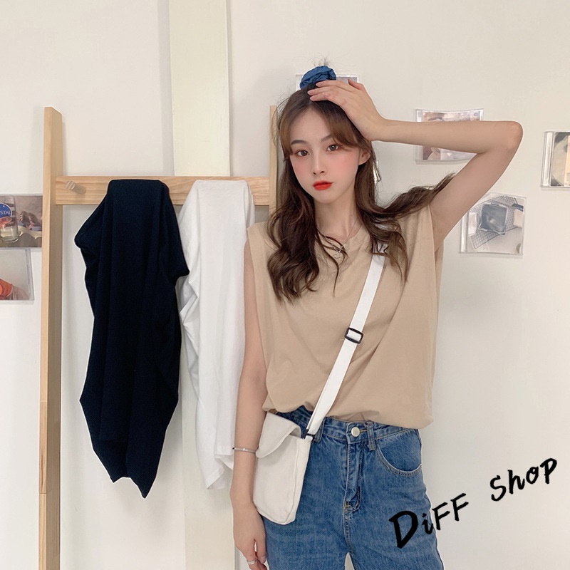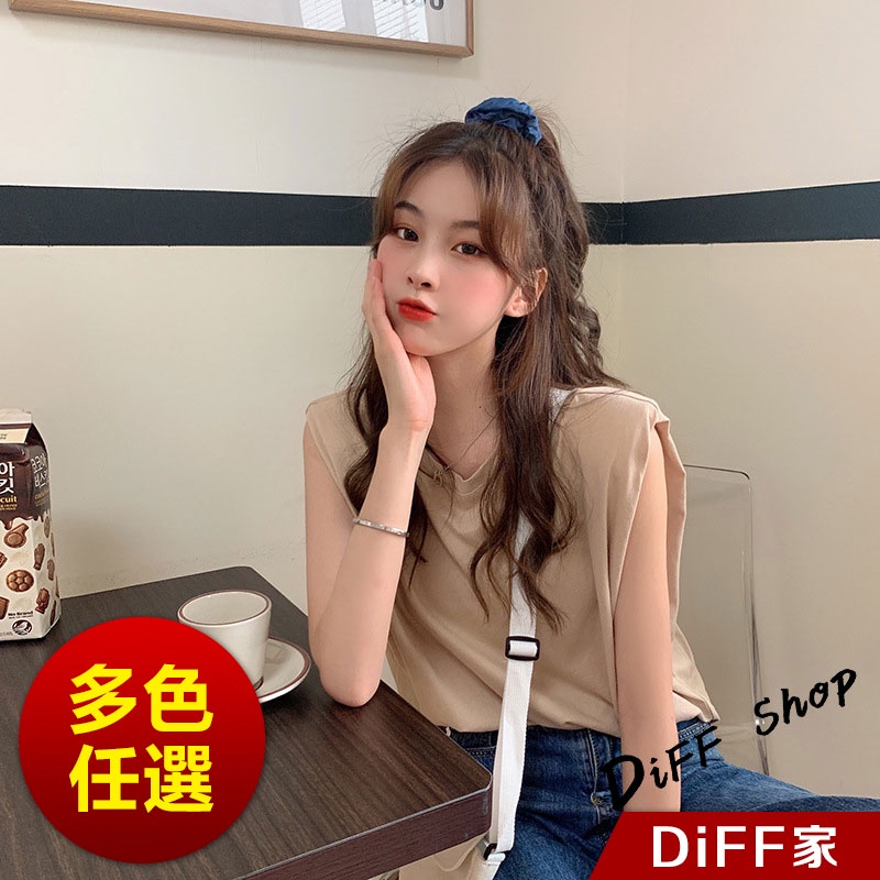 【DIFF】韓版寬鬆百搭圓領無袖上衣 背心 短袖上衣 短袖t恤 女裝 顯瘦上衣 衣服女 寬鬆上衣 素T【V157】