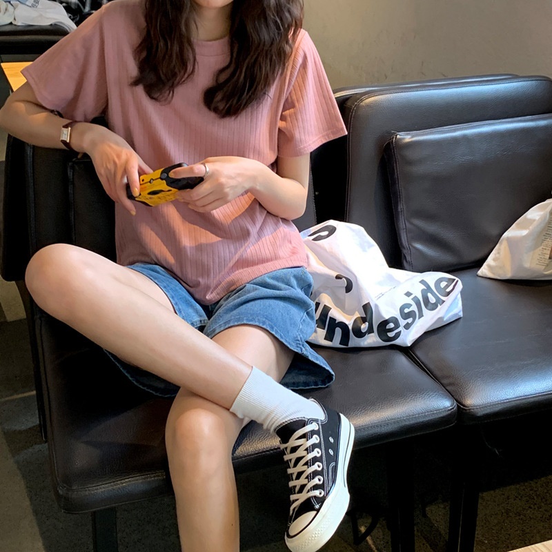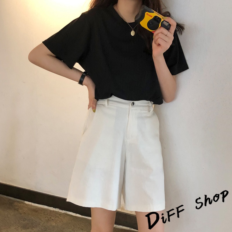 【DIFF】韓版素色條紋短袖針織上衣 短袖上衣 短袖t恤 女裝 顯瘦上衣 衣服 寬鬆上衣 素T【T382】