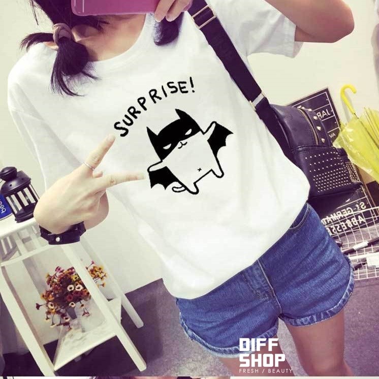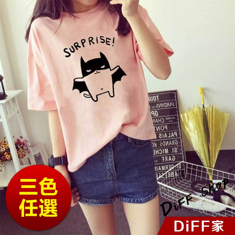 【DIFF】夏季新款韓版寬鬆圓領卡通蝙蝠短袖T恤 正韓風 韓妞 短袖上衣 素面 衣服 女裝【T89】