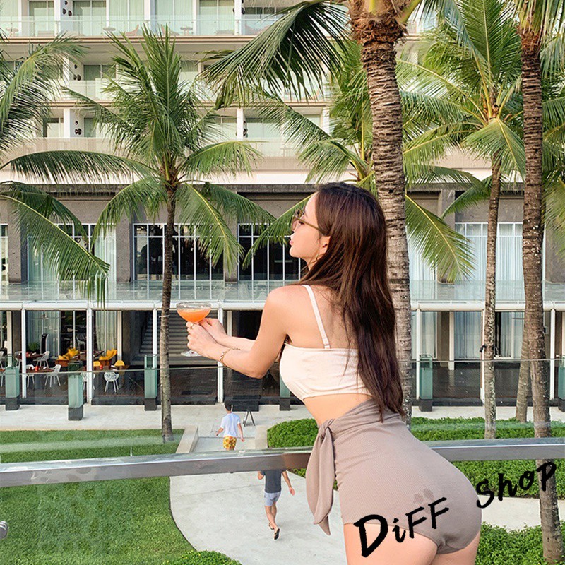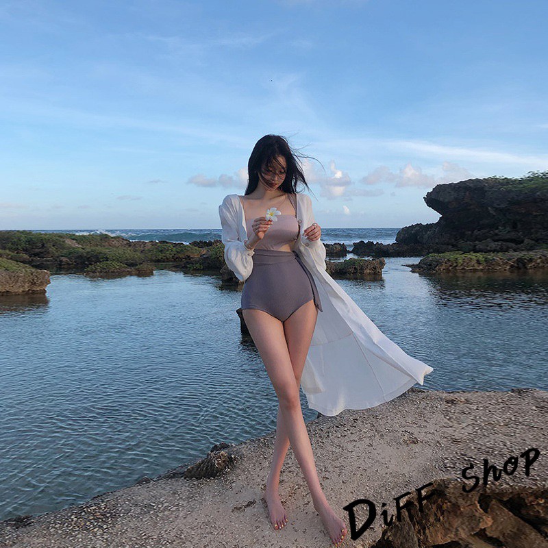 【DIFF】韓版不規則性感露腰綁帶撞色連體泳衣 保守比基尼 泳衣 套裝 泳裝 小可愛 上衣 女裝 S127【S133】