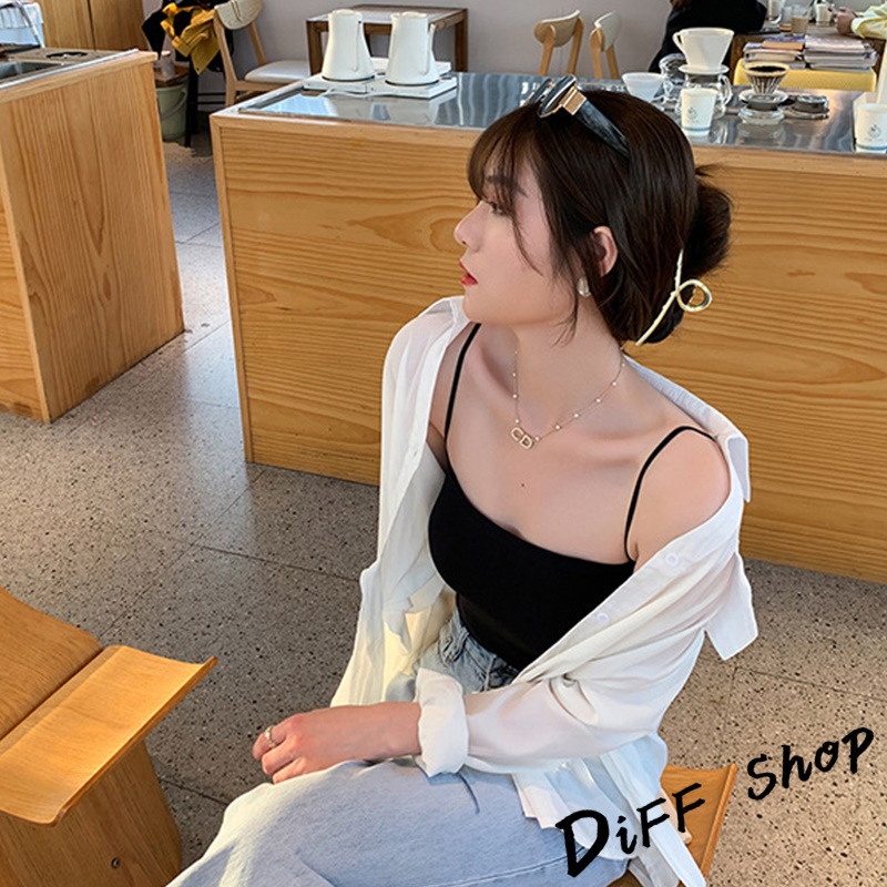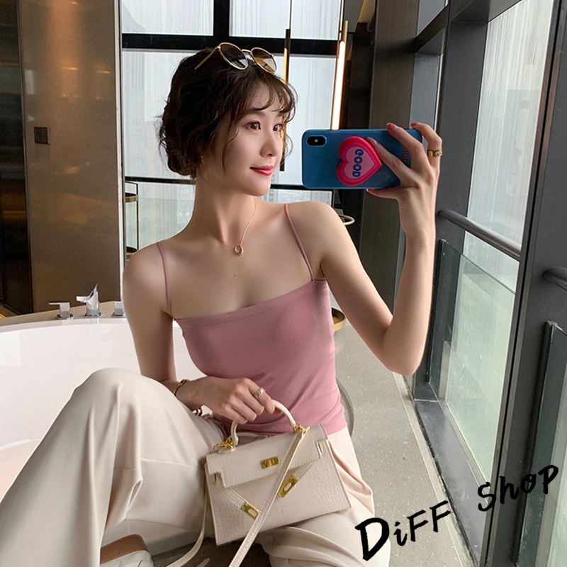 【DIFF】韓版裸色系吊帶一體式背心 帶胸墊免穿內衣 上衣 小可愛 女裝 背心女 衣服 短版上衣 【V154】