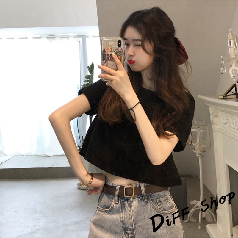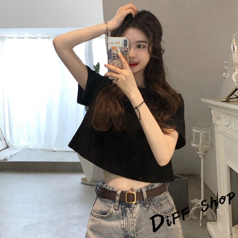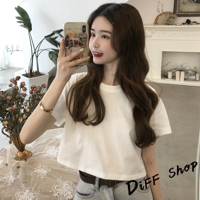 【DIFF】韓版顯瘦短版小個子短袖上衣 短袖t恤 女裝 顯瘦上衣 衣服 寬鬆上衣 素T 短板上衣 短版上衣 【T392】