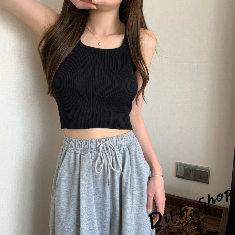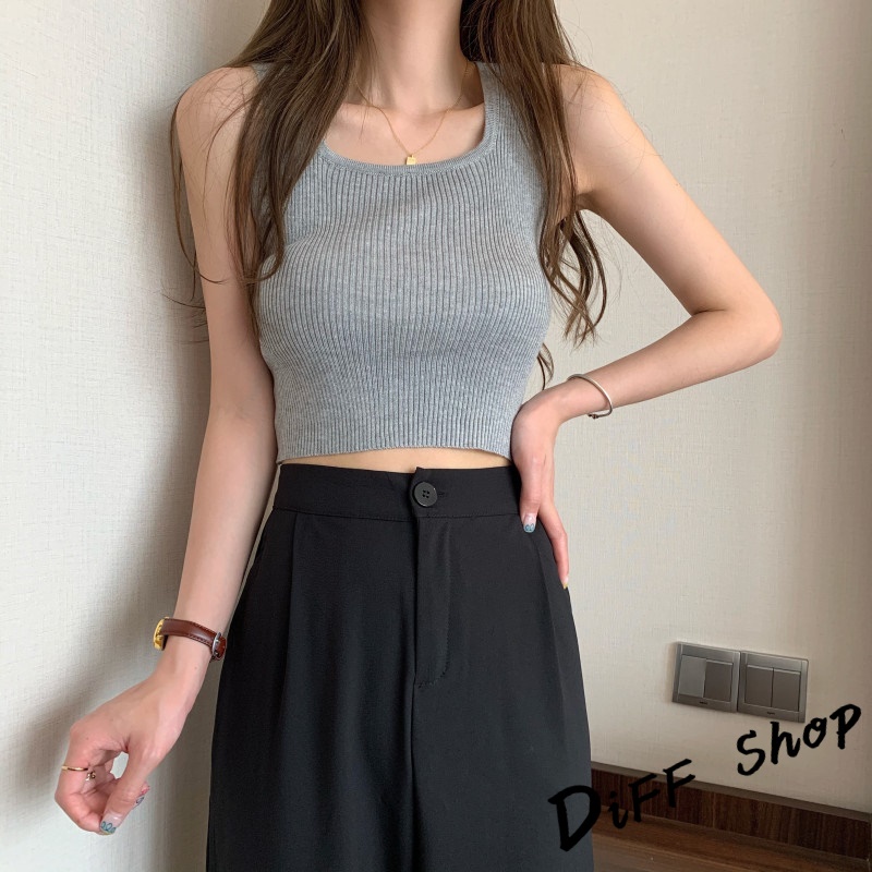 【DIFF】韓版U領短版針織背心 上衣 小可愛 女裝 背心女 衣服 短版上衣 冰絲背心【V181】