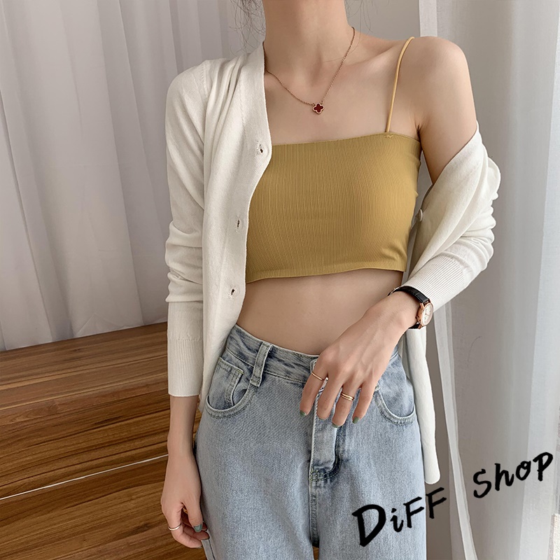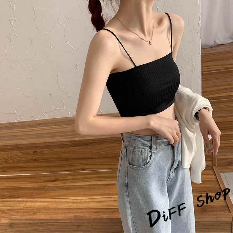 【DIFF】韓版冰絲細肩平口美背小可愛 帶胸墊免穿內衣 上衣 小可愛 女裝 背心女 衣服 短版上衣 冰絲背心【V201】