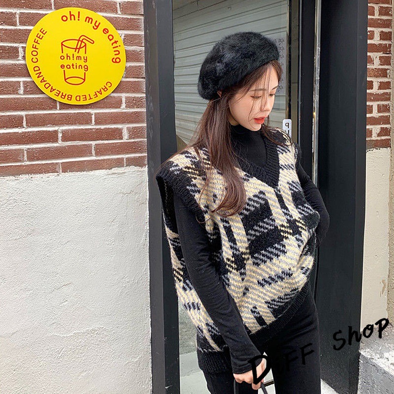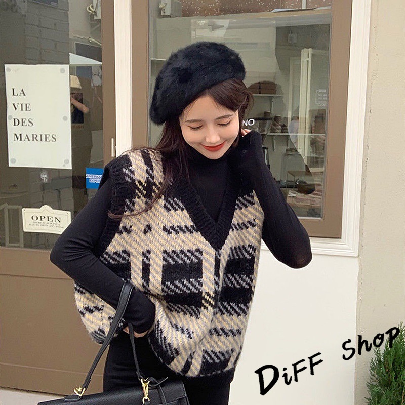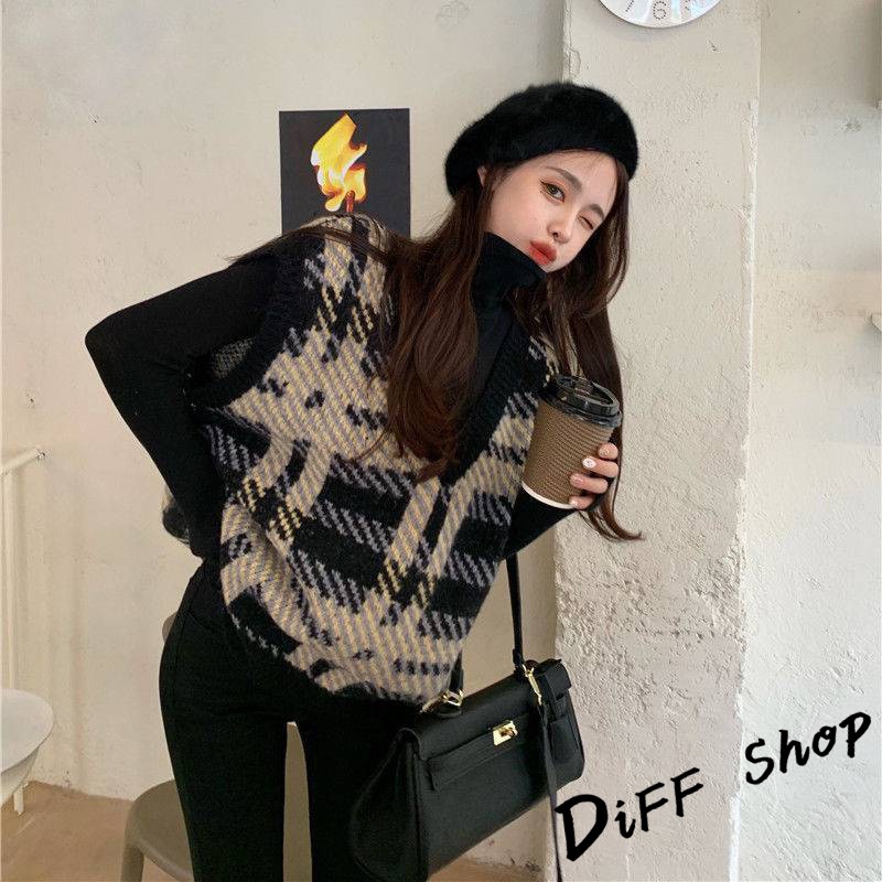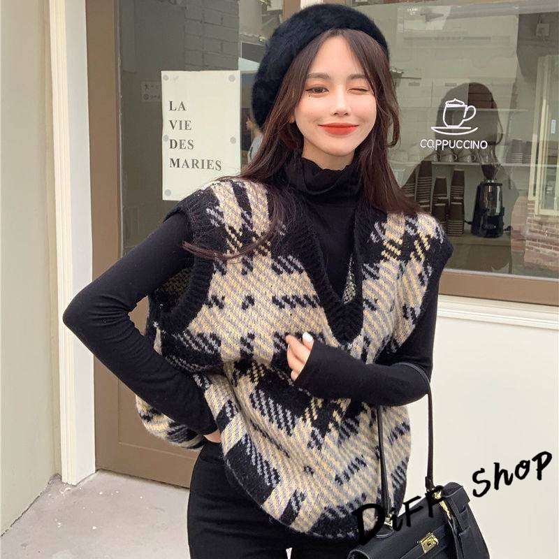 【DIFF】韓版寬鬆線條復古百搭針織背心 針織上衣 毛衣 長袖上衣 女裝 衣服 寬鬆上衣 顯瘦上衣 冬裝【W226】
