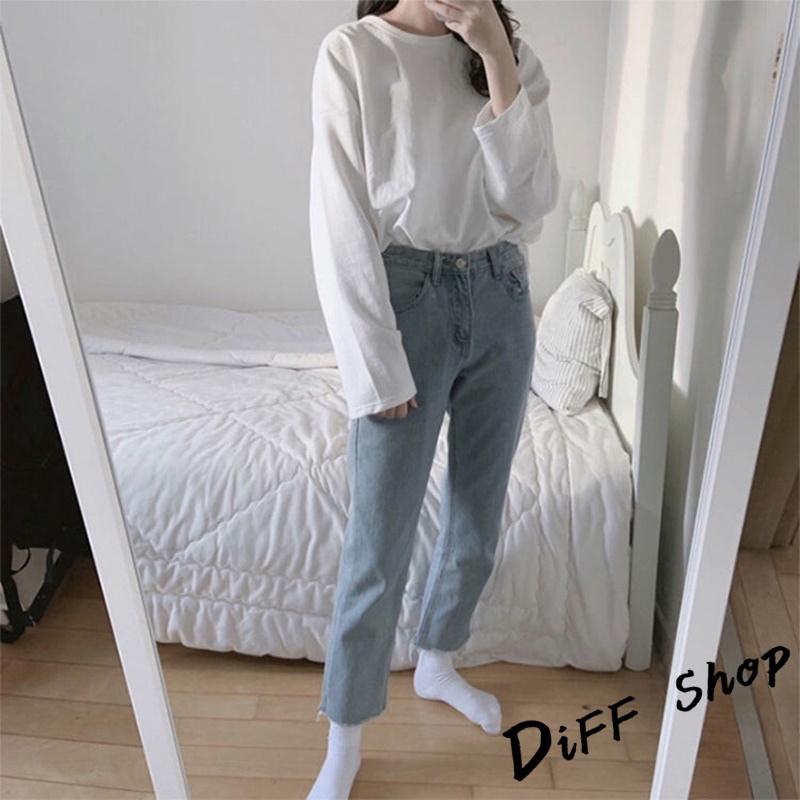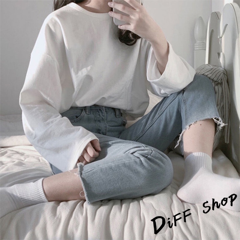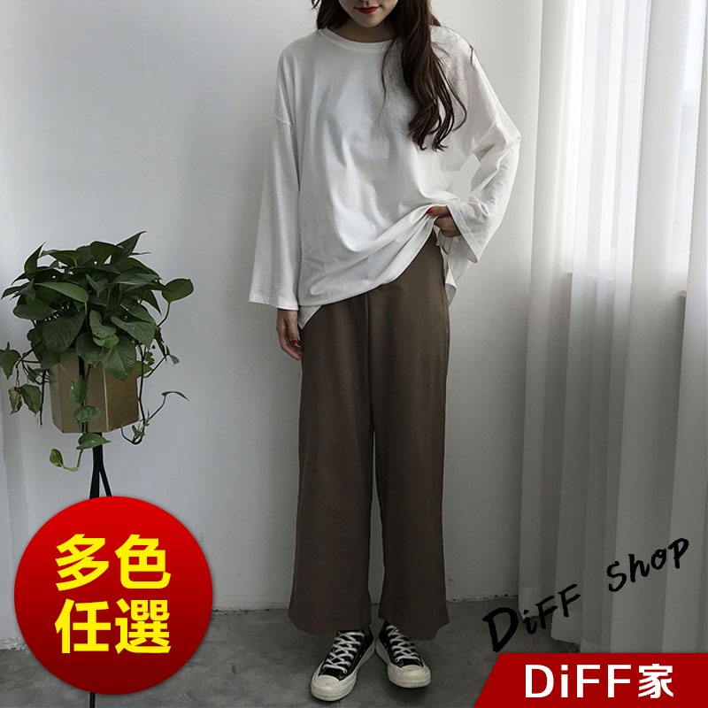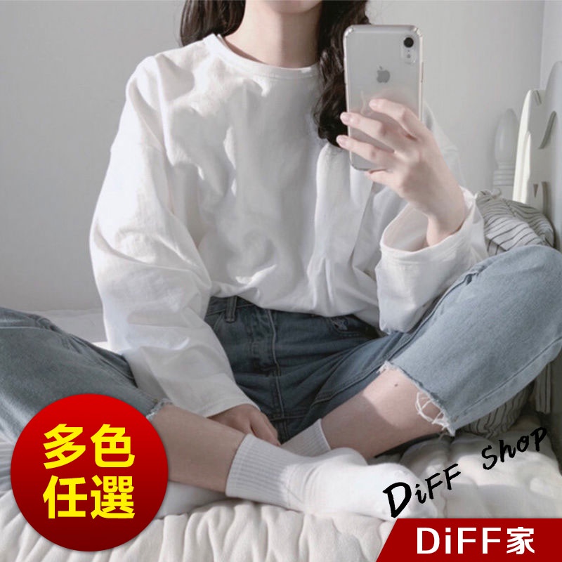 【DIFF】韓版寬鬆顯瘦素色休閒長袖上衣 女裝 衣服 寬鬆上衣 顯瘦上衣 冬裝 長袖t恤 素T【W66】