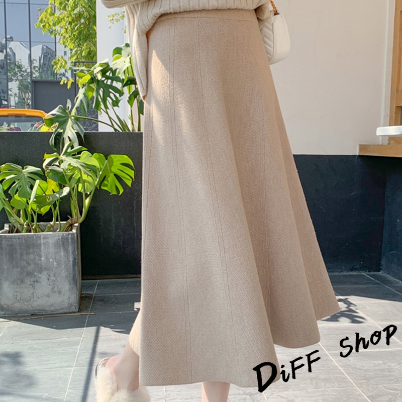 【DIFF】韓版鬆緊高腰顯瘦針織半身裙 A字裙 大擺裙 長裙 褲子 女裝 裙子【P173】