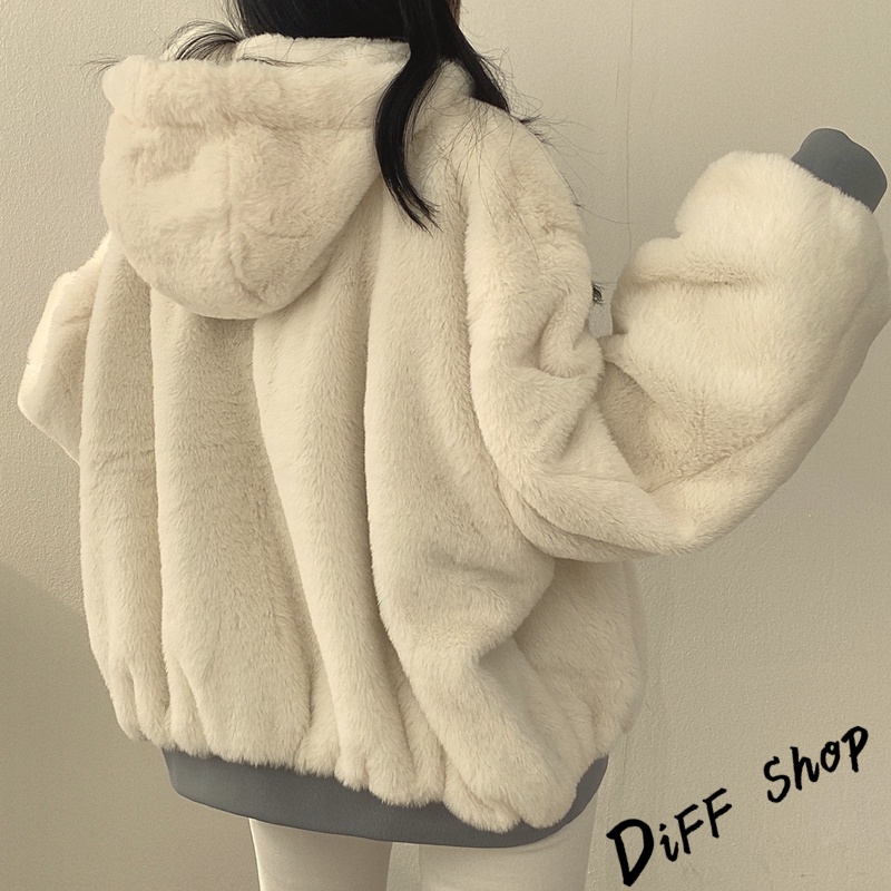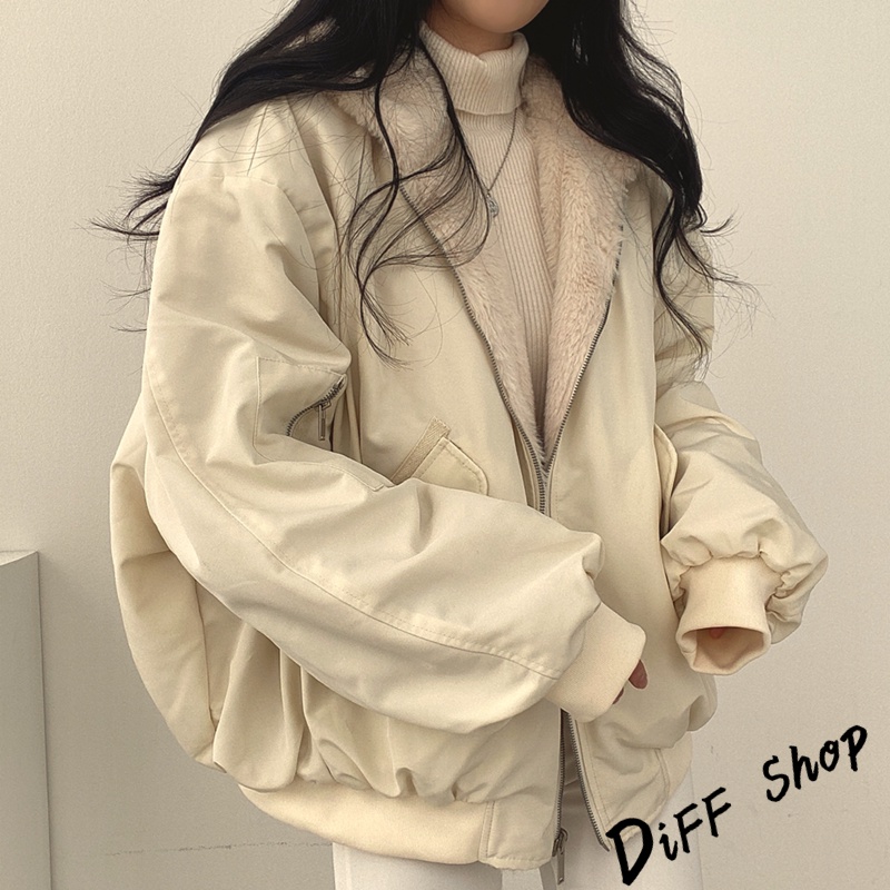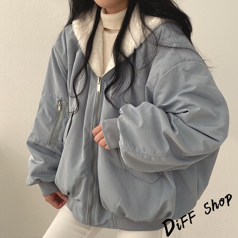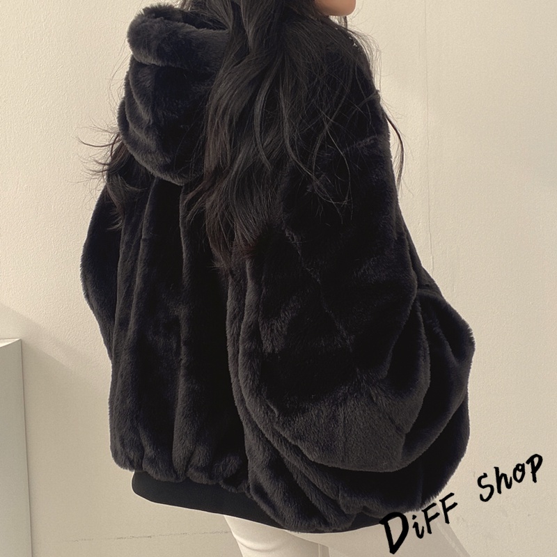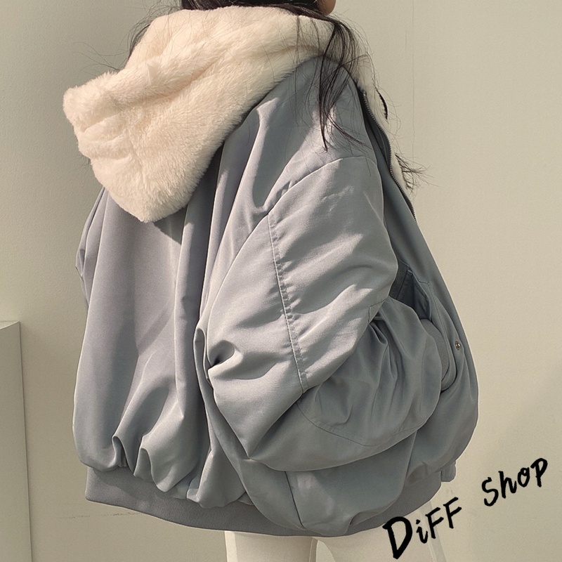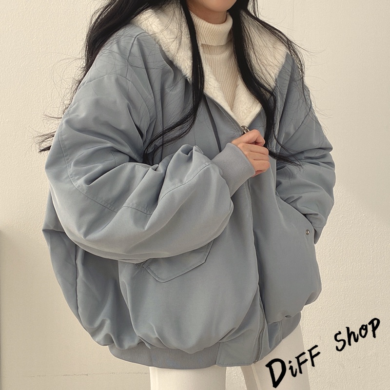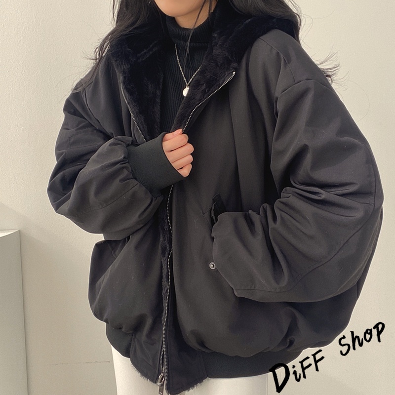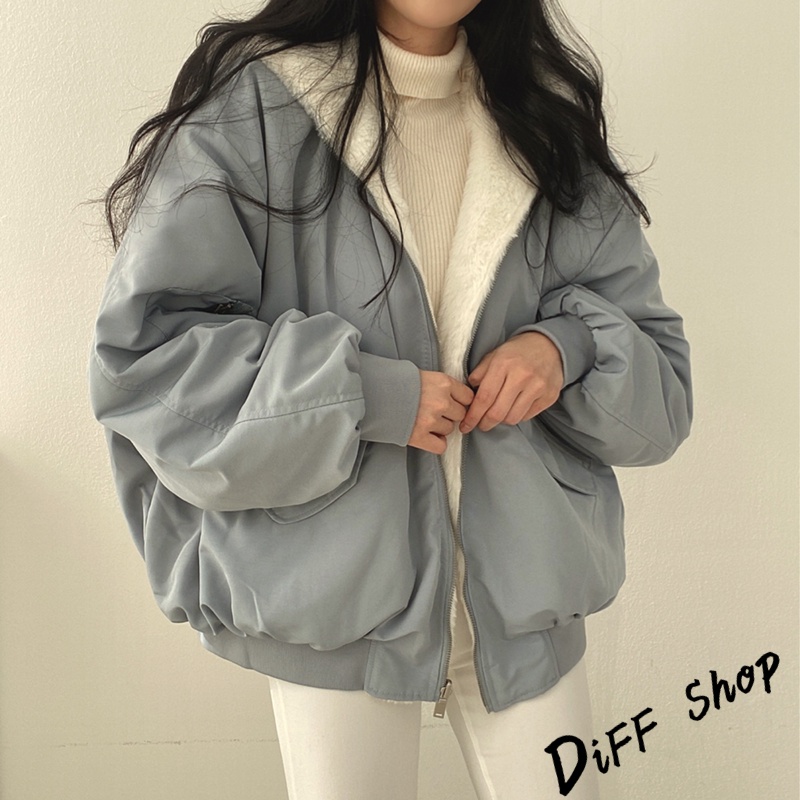 【DIFF】韓版兩面穿復古色系寬鬆加厚毛毛外套 厚外套 連帽外套 大衣 上衣 女裝 衣服 外套【J183】