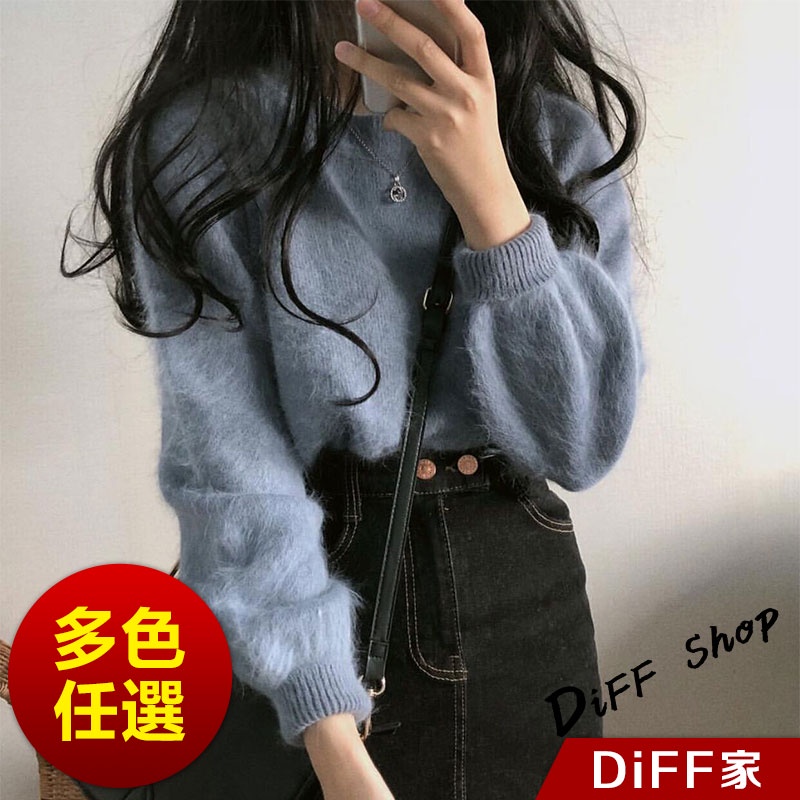 【DIFF】韓版圓領軟毛寬鬆毛衣 針織上衣 長袖上衣 女裝 衣服 寬鬆上衣 顯瘦上衣 冬裝 長袖t恤 素T【W256】