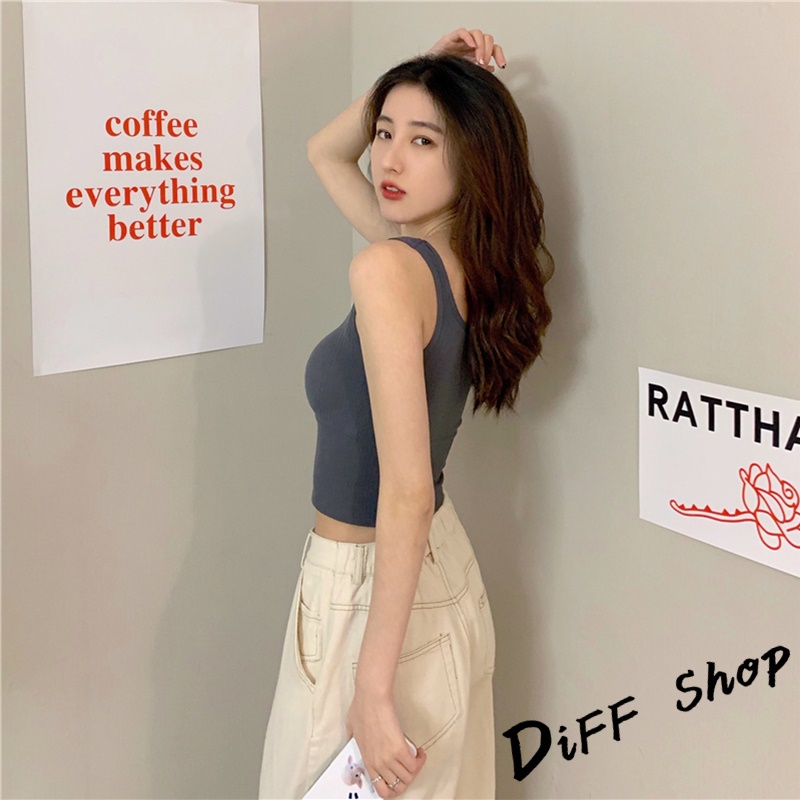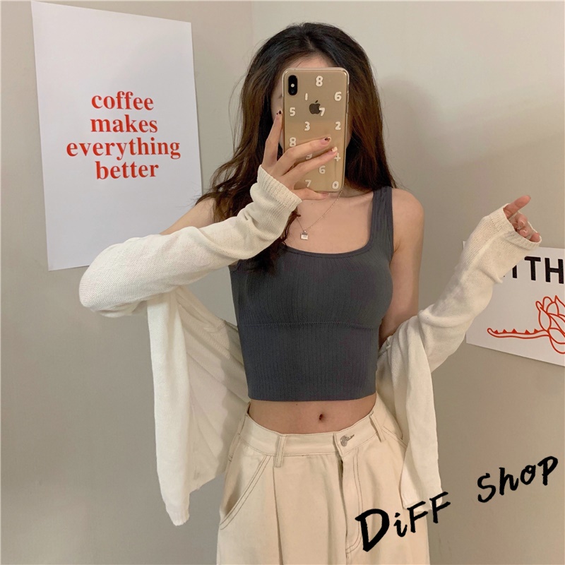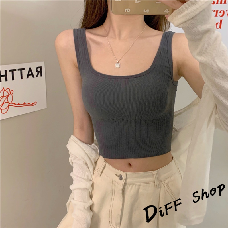 【DIFF】韓版修身百搭寬肩無縫針織背心 帶胸墊免穿內衣 上衣 小可愛 女裝 背心女 衣服 短版上衣【V166】