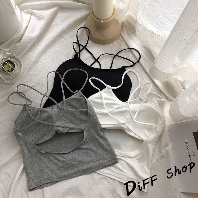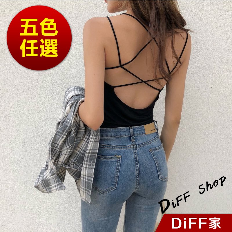 【DIFF】免穿內衣 夏季韓版細繩交叉大露背小可愛 帶胸墊 細肩背心 上衣 女裝 顯瘦上衣 衣服 背心【T182】