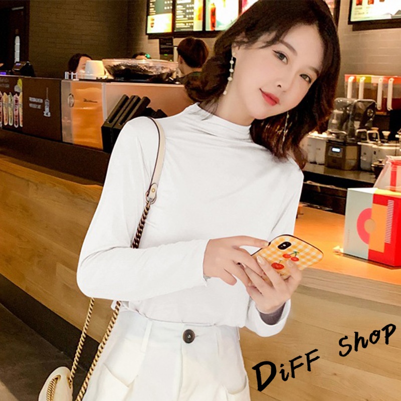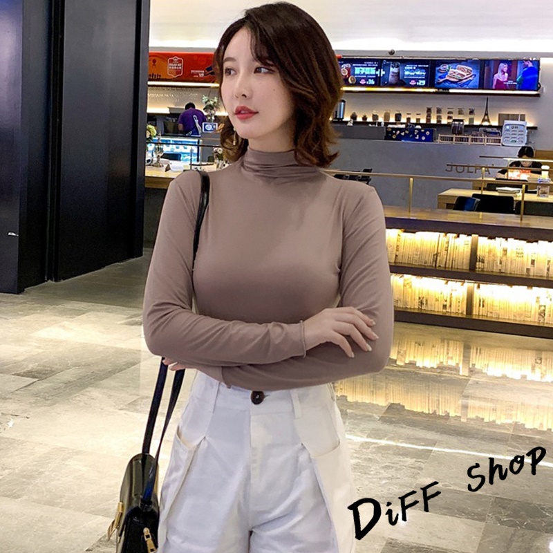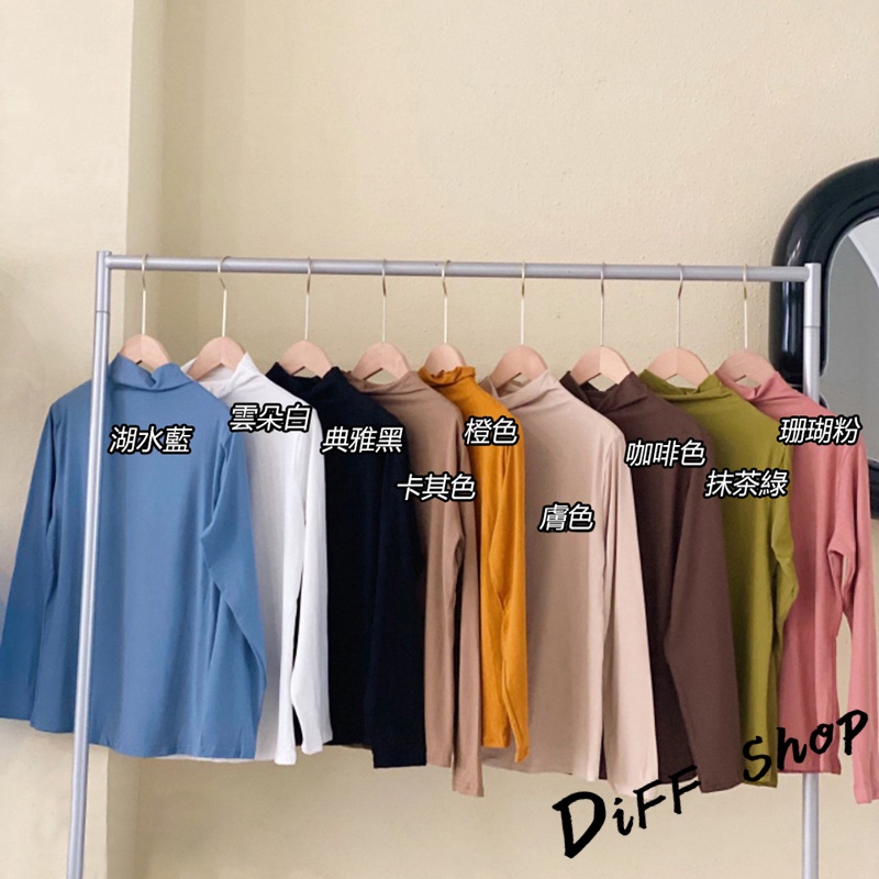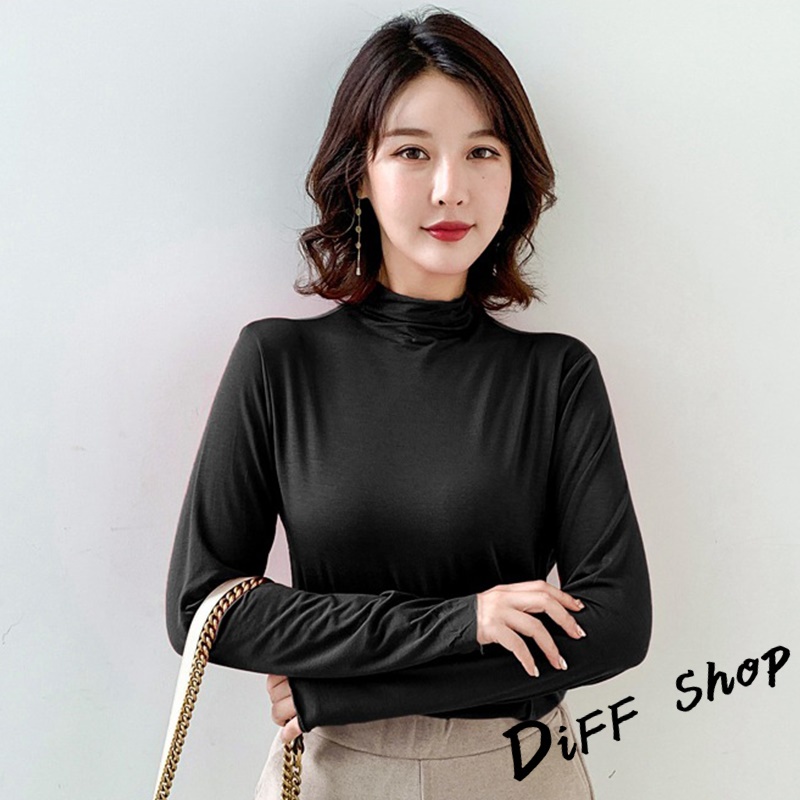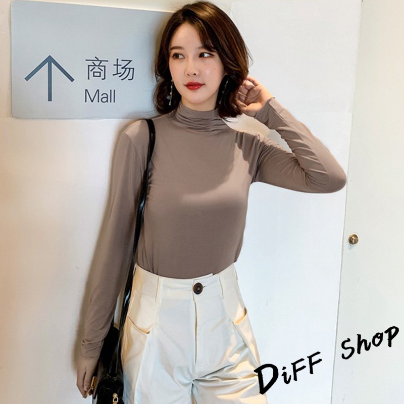 【DIFF】韓版半高領內搭長袖上衣 女裝 衣服 寬鬆上衣 顯瘦上衣 冬裝 長袖t恤 素T 素色 發熱衣 【W244】