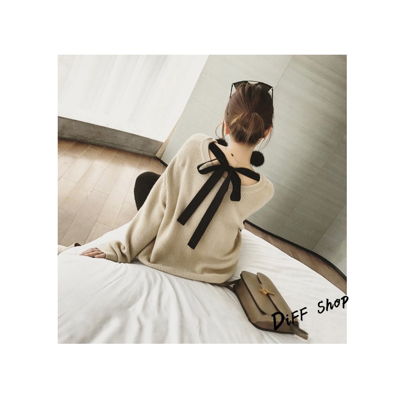 【DIFF】秋冬季新款韓版v領後背綁帶針織毛衣 針織上衣 上衣 長袖上衣 衣服 女裝 衣服 寬鬆上衣【W61】